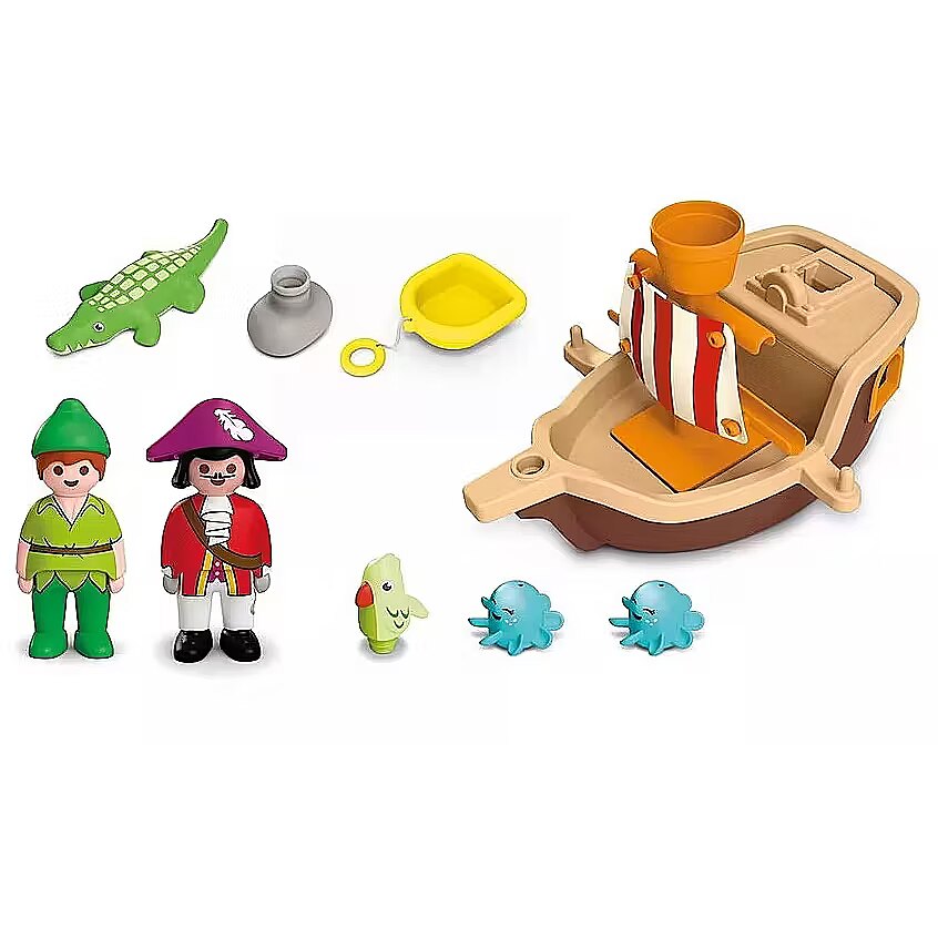 Accessories included - Figurki: 1 Piotruś Pan, 1 Kapitan Hak Zwierzęta: 2 ośmiornice, 1 krokodyl, 1 papuga Akcesoria: 1 statek piracki z masztem, 1 ponton, 1 rozpylacz