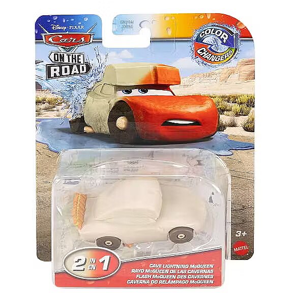 LongDesc - Based on favourite characters from Disney and Pixar Cars movies and Disney+ Cars On The Road, these 1:55 scale vehicles change colour when dipped in water for two paint jobs in one! Kids will love causing the transformation when they dunk their colour-changing cars into warm water for one look and then into icy cold water to change them right back. Kids can collect other colour-changing vehicles in the collection and build a transforming fleet! Each vehicle sold separately, subject to availability. Colours and decorations may vary.