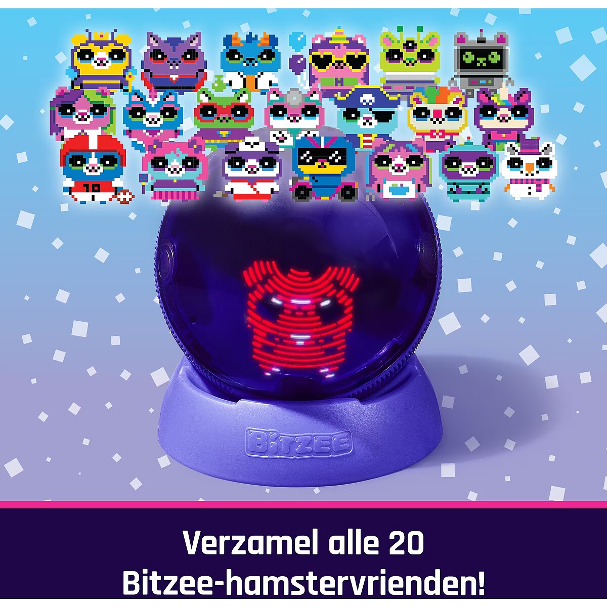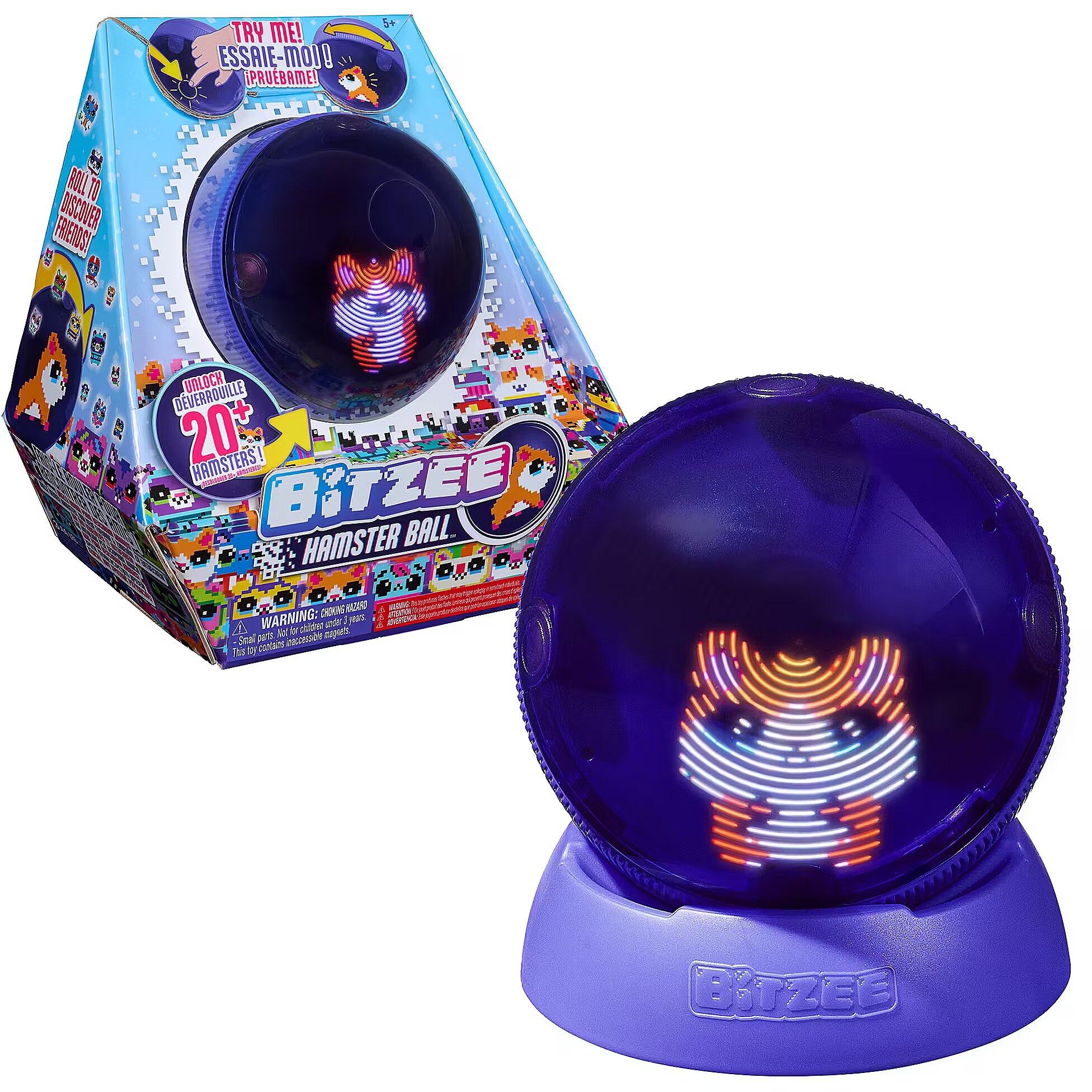 LongDesc - Introducing Bitzee Hamster Ball: digital friends you can interact with. Hamster Ball digital pets respond to touch and movements with cute sounds and reactions. Each Hamster Ball starts with a baby hero hamster. Feed your Bitzee, pet them, exercise on the hamster wheel and more. Watch your hero grow from baby to teen to Super Bitzee. Explore and roll to discover treats, items and 20 friends to collect with unique themes. Will you collect the Super Bitzee friends? Hamster friends even evolve at the same time as your hero and interact on the screen with them. Customize your hero Bitzee hamster’s outfits, backdrop and pose; snap a picture and scroll through looks. Plus, play 5 mini games. Includes 3 AA batteries. Warning: produces flashes that may trigger epilepsy in sensitised individuals. Kids who enjoy animation, kids’ electronics, surprise toys, animal toys, fidget toys and STEM toys will love Bitzee toys for boys and girls. Even adults will be mesmerized with Bitzee’s screen-free innovative twist on 90s toys & games from their childhood. Bitzee interactive pet toys for kids are must-have birthday gifts or gifts for girls and boys for any occasion. Roll into adventure with Bitzee Hamster Ball.Includes: 1 Bitzee Hamster Ball, 1 Stand, 1 Quick Start Guide, 1 Instruction Sheet