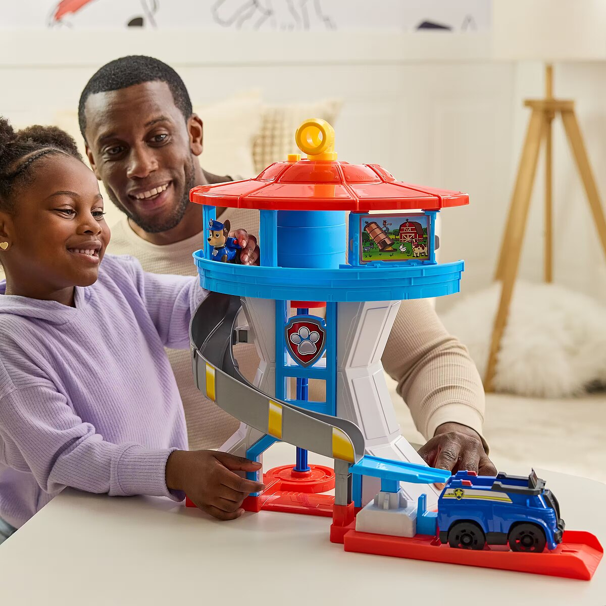 LongDesc - Join the PAW Patrol team with the PAW Patrol Lookout Tower—a 20-inch playset packed with excitement and adventure! This tower, with its genuine PAW Patrol styling, is the ultimate command center for thrilling missions. It includes two Chase toy figures and a police cruiser vehicle, making it PAWfect for imaginative play. When it’s time for an exciting rescue, place off-duty Chase into the front of the tower elevator, and place hero-pup Chase into the back of the elevator. Raise the elevator to make it rotate and watch off-duty Chase get ready for action as he turns into hero-pup Chase! The elevator locks in place until it's time to race to the rescue! With three double-sided mission cards, children can decide the day's mission and launch Chase down the slide into his vehicle, ready to save the day. These pup-tastic learning toys are PAWsome birthday or holiday gifts for boys & girls that love the series. Relive cherished moments from past PAW Patrol seasons, like the Mighty Pups and PAW Patrol Movie or create entirely new adventures with a PAW Patrol tower, individual PAW Patrol action figures and their respective PAW Patrol vehicles, for endless hours of turbo-charged adventuresIncludes: 1 Playset, 2 Figures, 1 Vehicle, 3 Mission cards, 1 Vehicle launcher