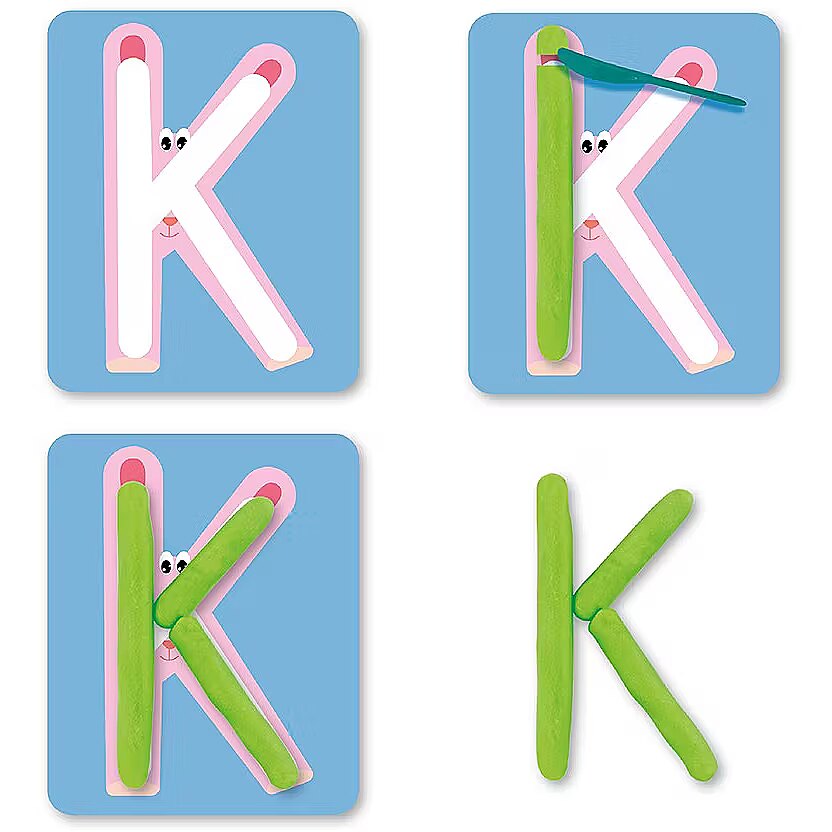 Description - Play set - Letters Playing with modeling dough stimulates imagination and creativity, as well as improving hand-eye coordination. Kneading and shaping dough develops the child's motor skills, which are useful when writing or drawing, and pinching, squeezing and rolling the dough stimulates the sense of touch.