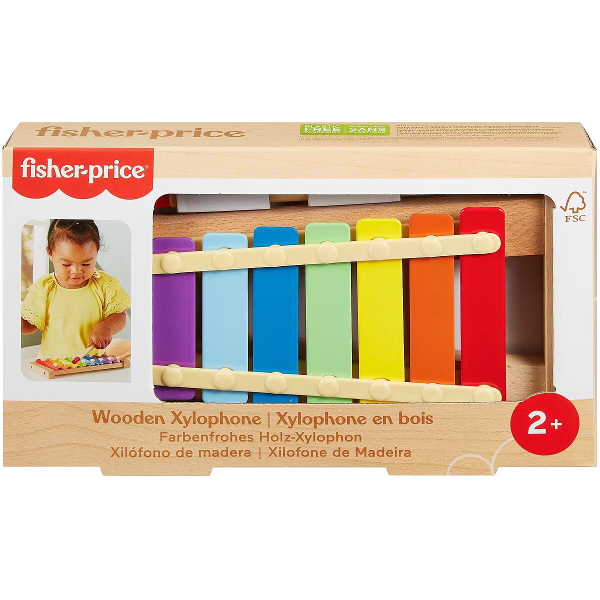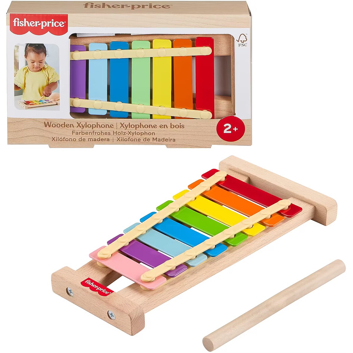 LongSummaryDescription - Fisher-Price Wooden Xylophone, Musical Instrument Toy for Toddlers, 2 Wood Pieces. Recommended age (min): 2 yr(s), Recommended age (max): 5 yr(s), Sounding, Material: Wood, Product colour: Multicolour. Weight: 315 g