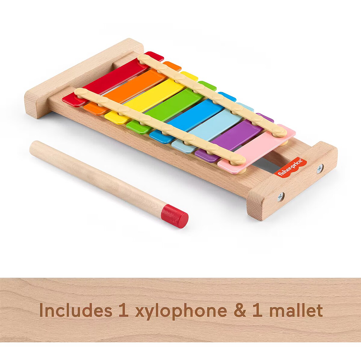 LongDesc - Toddlers will be inspired to explore sounds and tap out tunes on the Wooden Xylophone musical toy from Fisher-Price. Each brightly coloured metal key plays a different note and is a fun way to encourage your little one to express their creativity while developing their fine motor skills. Made with wood from Forest Stewardship Council-certified sources (FSC-N004566) and decorated with non-toxic, water-based paints. Colours and decorations may vary.