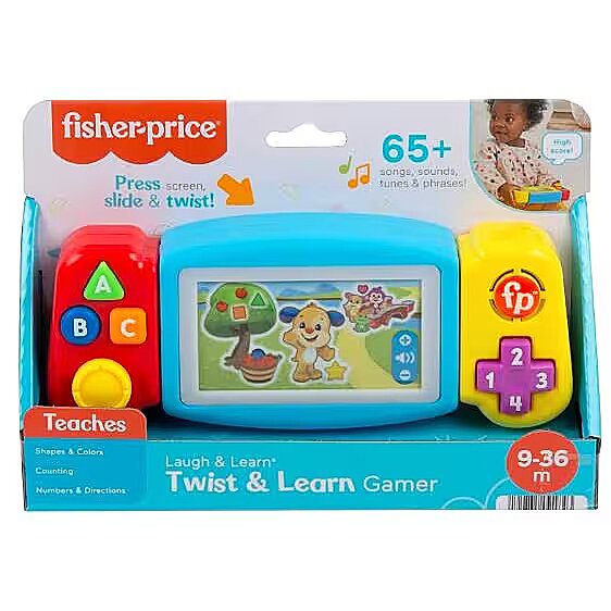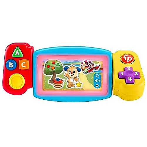 Description - Enter a new level of fun with the ABC Little Player Console Learn and Laugh! from Fisher-Price. This interactive educational toy looks like a real game console, but includes kid-appropriate elements: friends Learn and Laugh! on the screen, 2 controller handles for twisting and sliding, and lots of buttons to press. When a toddler plays, it activates colourful lights, songs and educational statements that teach counting from 1 to 10, shapes and colours. Press the globe button to select the language: Polish, Hungarian, Czech, Slovak or English. Toy portable game console with lights, music and friends Learn and laugh! for early role play Toddlers control the fun with buttons to activate colourful lights, music and sounds Learn and play with music: over 65 activations of songs, sounds and statements help baby learn counting from 1 to 10, shapes and colours. Press the globe button to select the language: Polish, Hungarian, Czech, Slovakian or English. Realistic design: move the joystick, press the directional pad and move or twist the controller handles Helps develop dexterity and introduces the principle of cause and effect for children aged 9 months to 3 years.