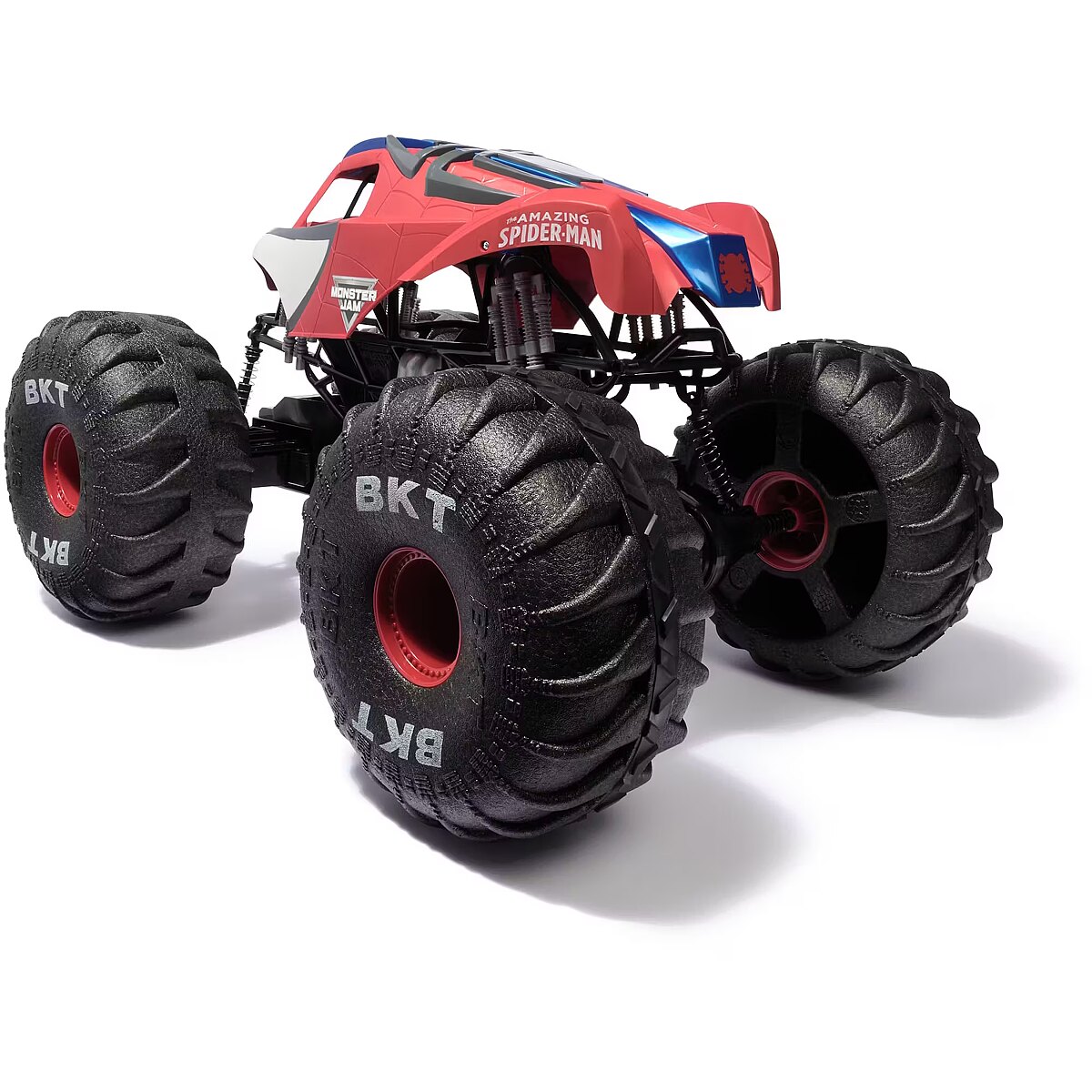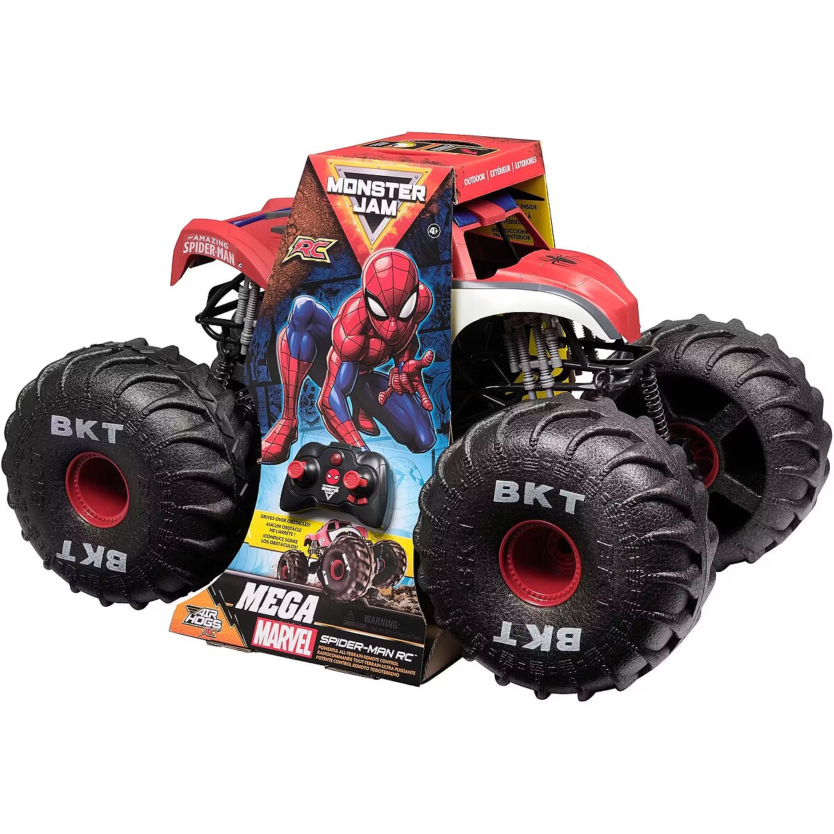 LongDesc - Swing into epic Monster Jam action with the Marvel Spider-Man RC Monster Truck. Dominating at over two feet long, this 1:6 scale behemoth is Spider-Man-themed, showcasing his iconic red and blue, primed for ground-shaking performances. Designed to navigate and conquer, its oversized tires and advanced suspension are set for hero-sized stunts and relentless Monster Jam excitement! In the hands of aspiring young drivers, this RC truck isn’t just a toy - it’s a portal to adventure, combining the raw power of Monster Jam with Spider-Man's heroic spirit. The intuitive remote puts kids in control of the action, driving their Spider-Man truck on off-road escapades and soaring jumps - no web required! Built tough for non-stop play and styled for the Spider-Man enthusiast, this RC truck is a call to the courageous, ready to take on any backyard villainy. This makes for a great alternative to a rc car, rc plane, remote control boat, remote control helicopter and other rc trucks. It's here to spin a web of excitement, inspiring kids to weave their own tales of Monster Jam heroics. So, power up, take the wheel, and propel the Mega Marvel Spider-Man RC Monster Jam Truck into a world where only the most audacious stunts are expected!Includes: 1 Monster Jam Mega 1:6 Scale RC, 1 Remote Control, 1 Charging Cable, 1 Instruction Guide