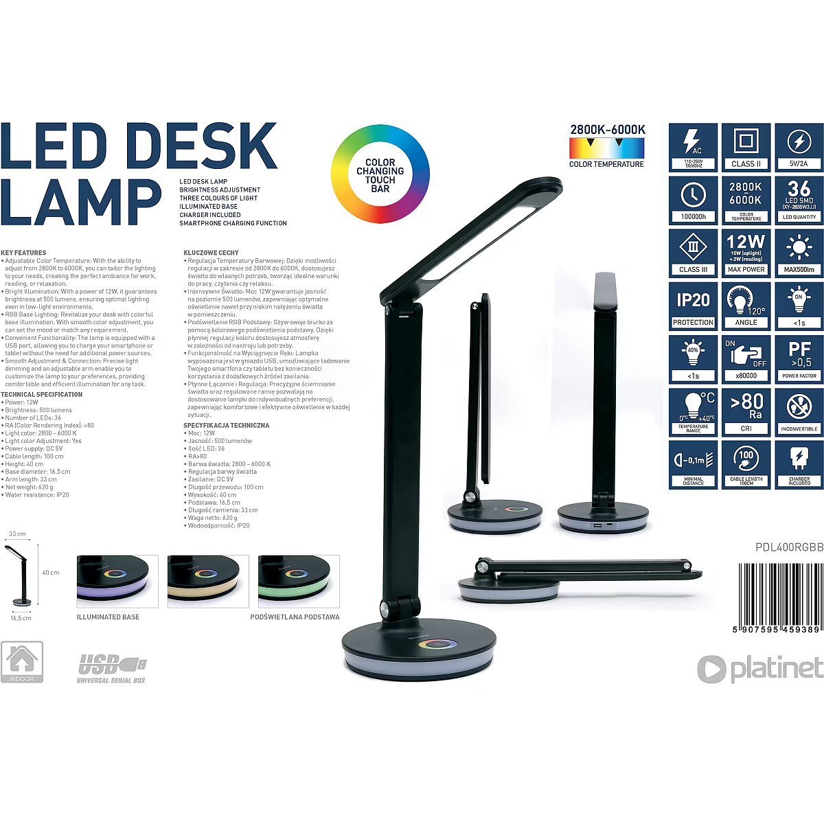 name_en - Platinet desk lamp PDL400 12W, black (45938)