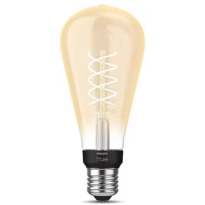 MediumDescription LV - Iegarenās Edisona stila kvēlspuldzes lielākā versija. Šī ST72 spuldze ietver Bluetooth, serpentīnveida tinuma kvēldiegu un elegantu dzintara krāsas pārklājumu mūsdienīgai retro dizaina interpretācijai. Izmantojiet ar Bluetooth vai savienojiet pārī ar Hue Bridge, lai atslēgtu citas viedā apgaismojuma funkcijas. • Maigi balta gaisma, retro spuldze;