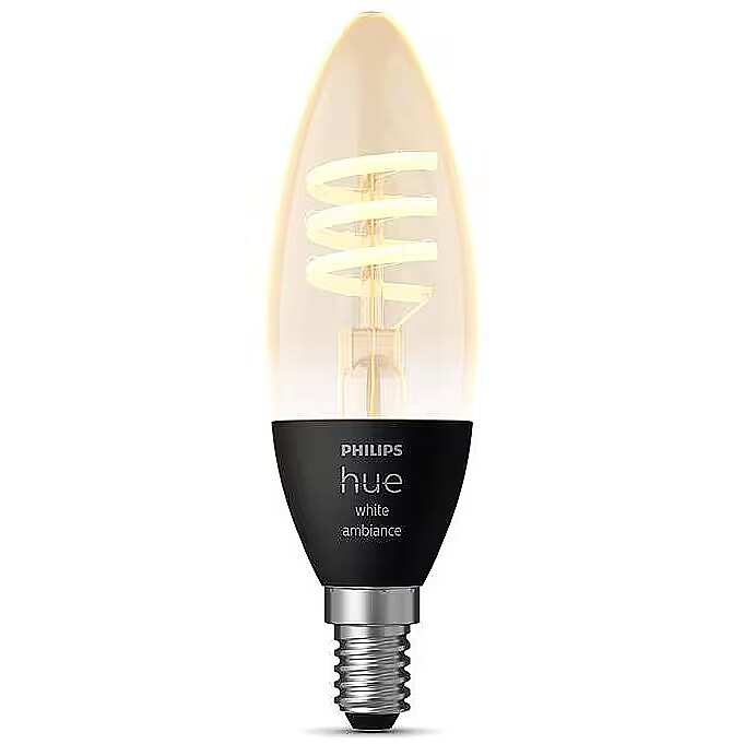 LongDesc - Easy smart lightingGet the classic look of a vintage bulb in a smaller size. The Filament candle bulb has a coiled inner lament and E14 base, perfect for bringing warm-to-cool white light to small xtureswhere you want vintage style with a modern twist.Easy smart lighting- Control lights with your voice- Control lights with your voice- Unlock full suite of smart light features with Hue Bridge- Set the right mood with warm-to-cool white light