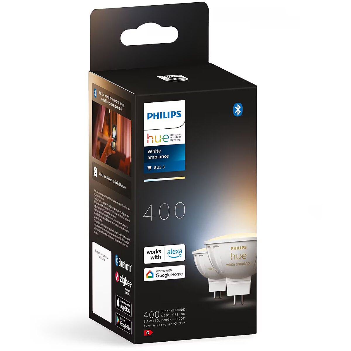 ShortSummaryDescription - Philips Hue White ambience MR16 – smart spotlight – (2-pack), Smart bulb, Bluetooth/Zigbee, White, LED, GU5.3, MR16