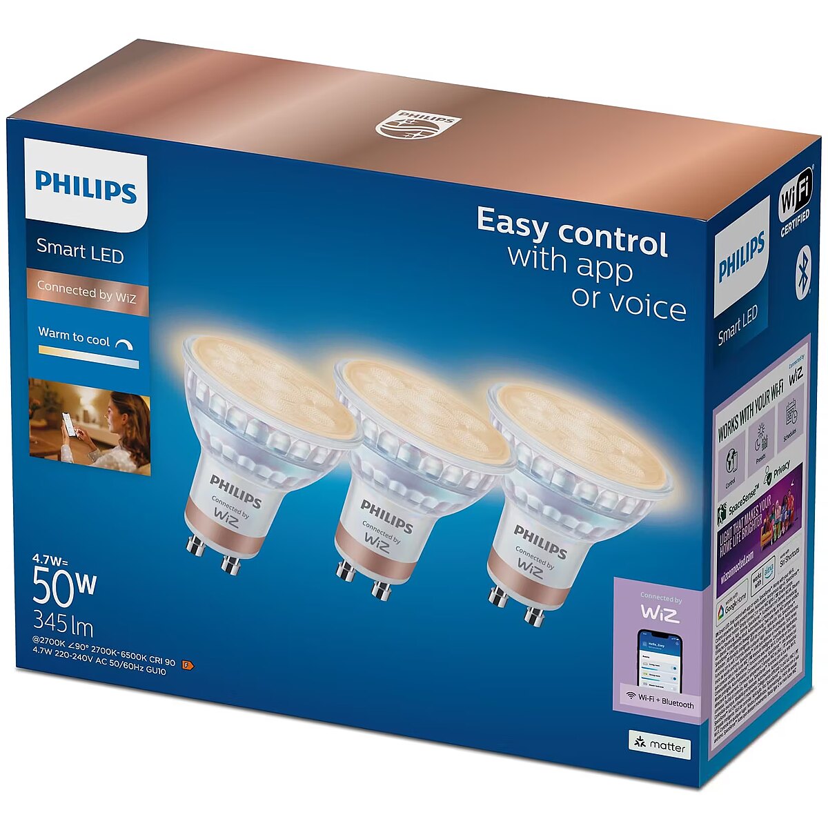 Name ET - Philips Wiz 4.7W(50W) GU10 Glass TW 3pcs