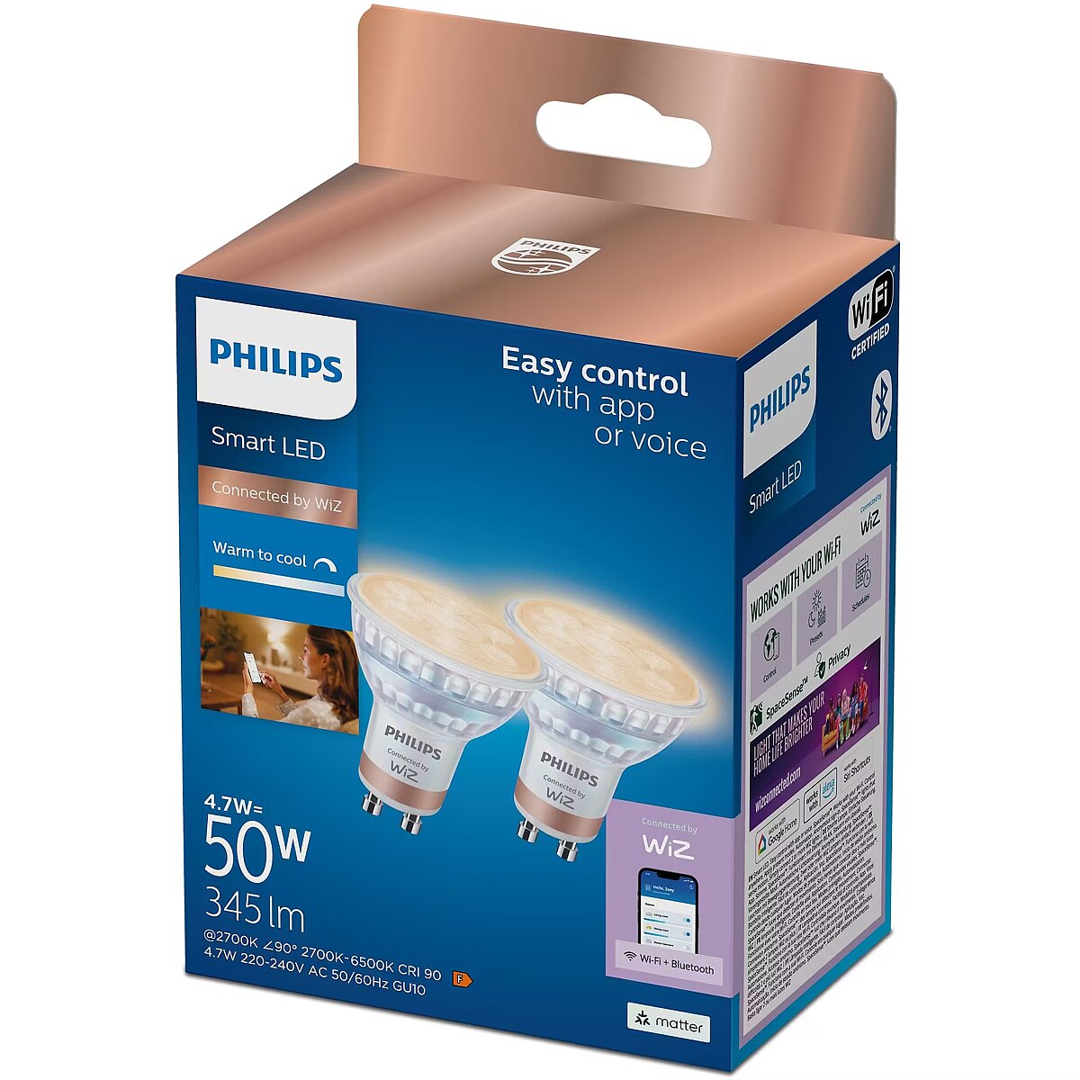 Name ET - Philips Wiz 4.7W(50W) GU10 Glass TW 2pcs