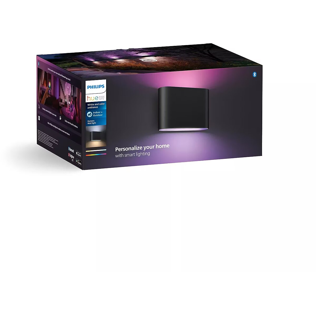 LongSummaryDescription - Philips Hue White and colour ambience Dymera indoor and outdoor wall light. Type: Smart wall light, Interface: Bluetooth, Product colour: Black. Input voltage: 220–240 , AC input voltage: 220–240 . Width: 160 mm, Depth: 230 mm, Height: 94 mm. Package width: 292 mm, Package depth: 209 mm, Package height: 140 mm. Quantity per pack: 1 pc(s)
