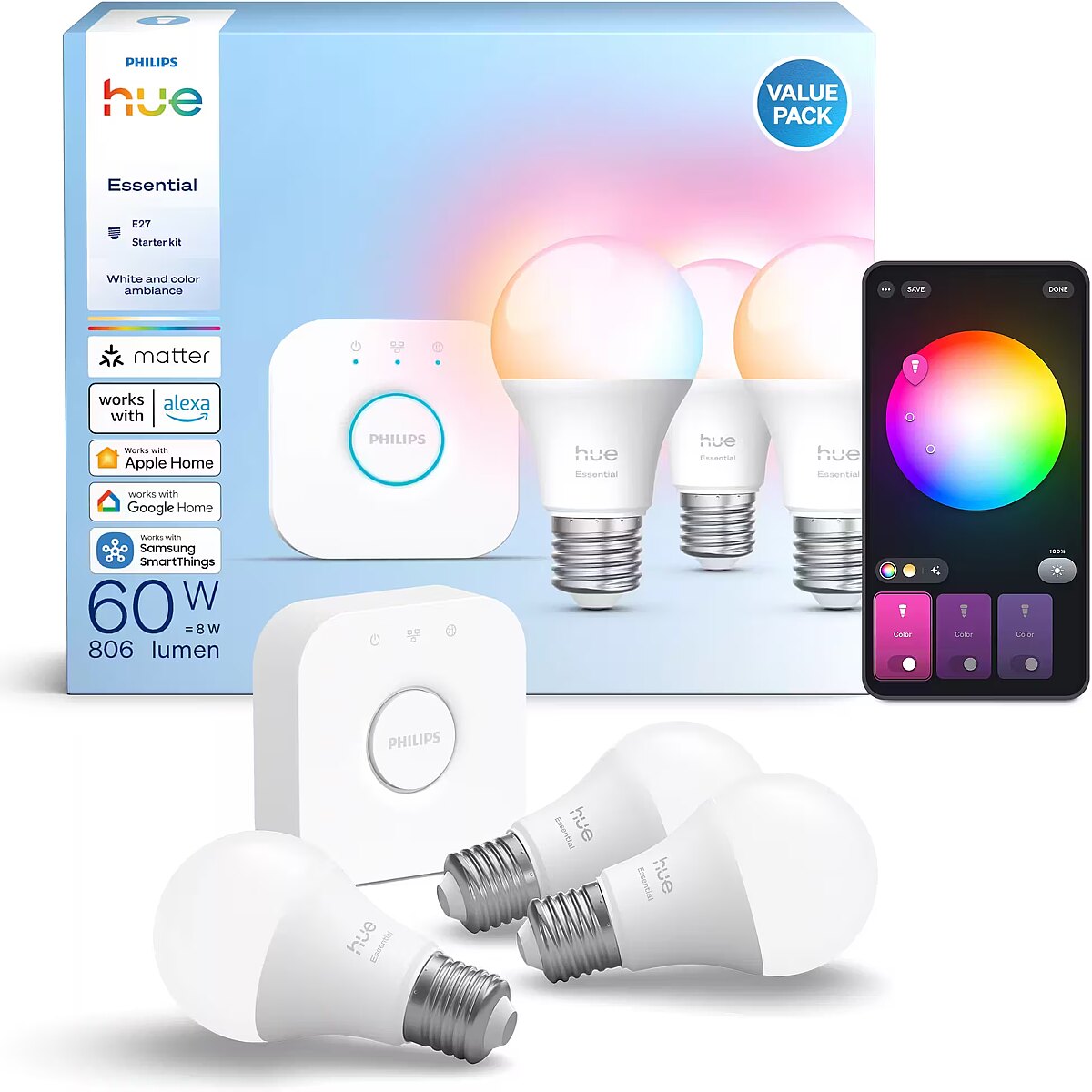 Title - Philips Hue White and colour ambience Essential starter kit: 3 E27 smart bulbs (806 lm)