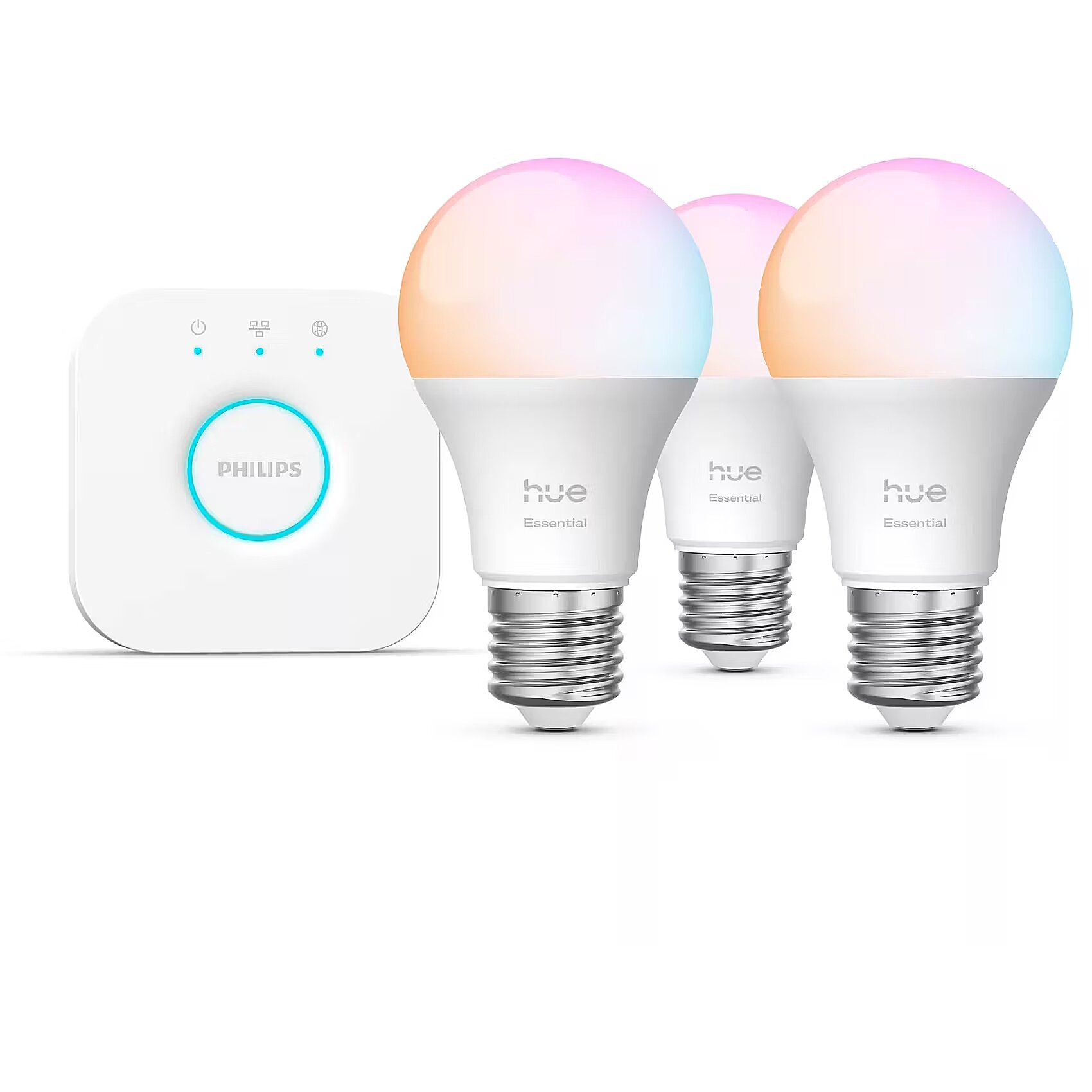 Philips Hue Essential Starter Kit, A60 + Hue Bridge, Full Color, E27, 3 pc, white - Smart light