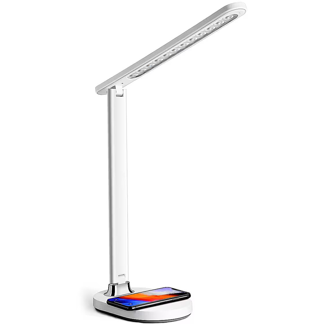 Настольная лампа с современным дизайном для прикроватного столика или рабочего стола. Лампа оснащена сильным потоком света 500 лм, а также регулируемой температурой 3800–4200 K, так что Вы можете выбрать между теплым и холодным светом в зависимости от настроения. Встроенная беспроводная зарядка В основание лампы встроена беспроводная зарядка, благодаря которой, помимо освещения рабочего стола, можно также заряжать свой смартфон. Энергосберегающая