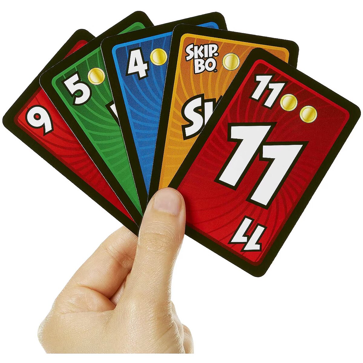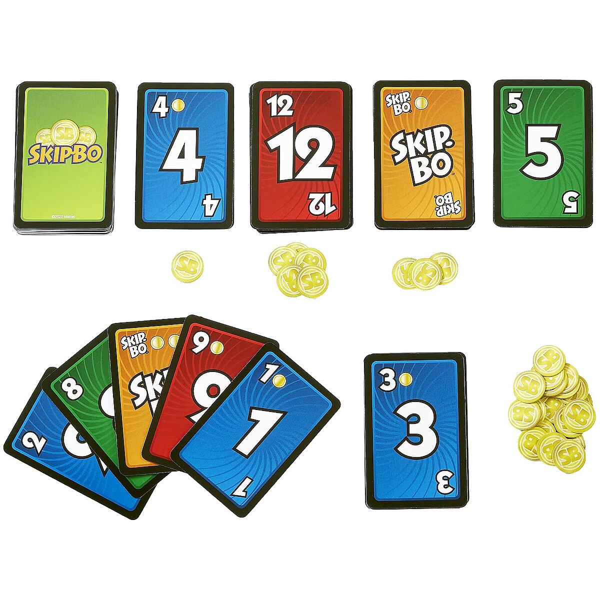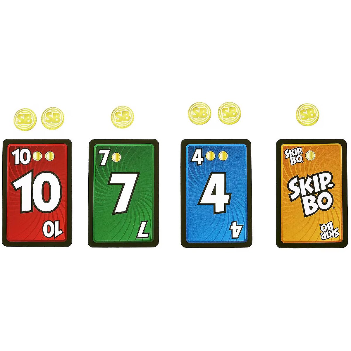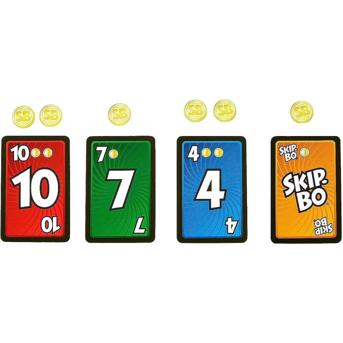 LongDesc - It's the Skip-Bo card game players know and love, but with special coins that add a strategic twist! Players still try and get rid of all the cards from their Stock Pile, but the coins can be used to help fill in a sequence of cards or even to buy a card from another player's Discard Pile or Stock Pile! Kids and adults will love playing this family card game whether for game night or travel. Makes a great gift for card game lovers ages 7 and up.