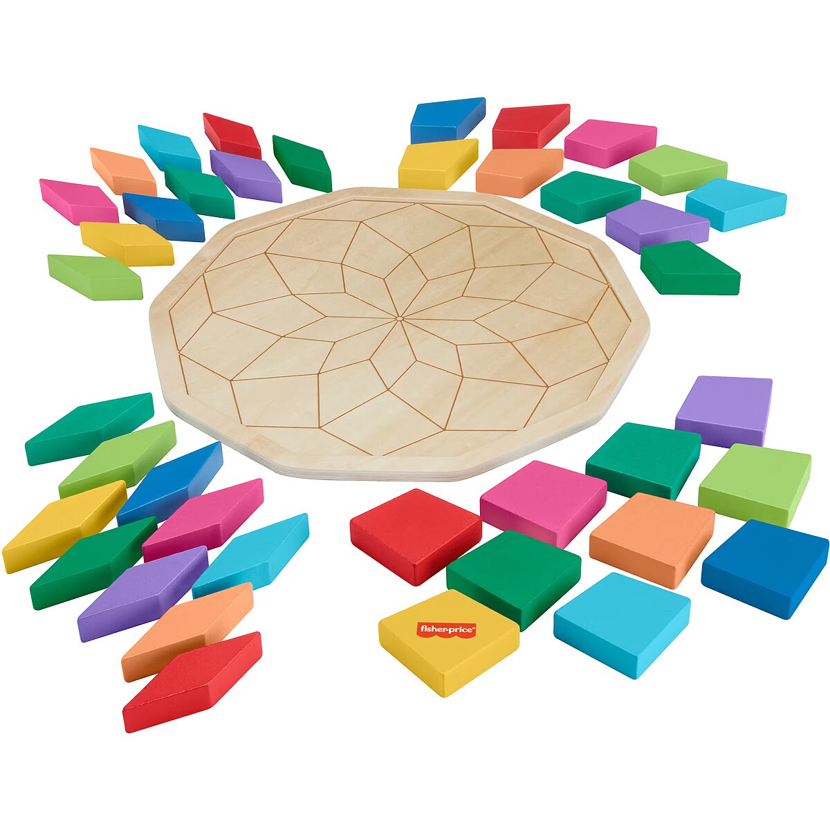 Title - Fisher-Price Wooden Mandala Geometric Puzzle for Toddlers & Kids, 40 Wood Pieces