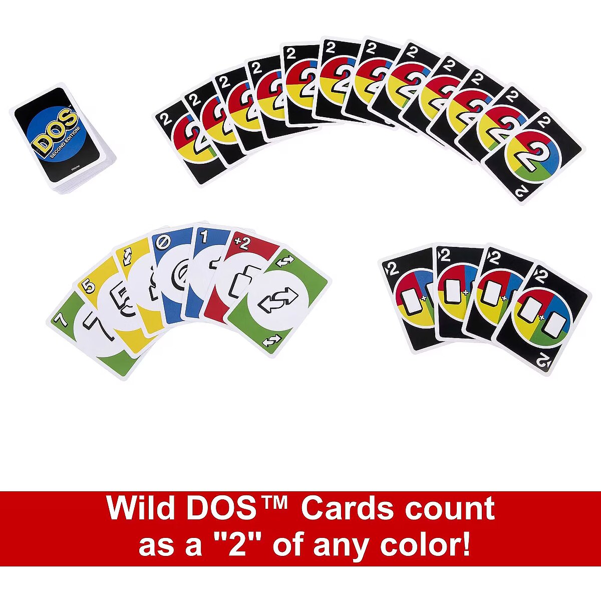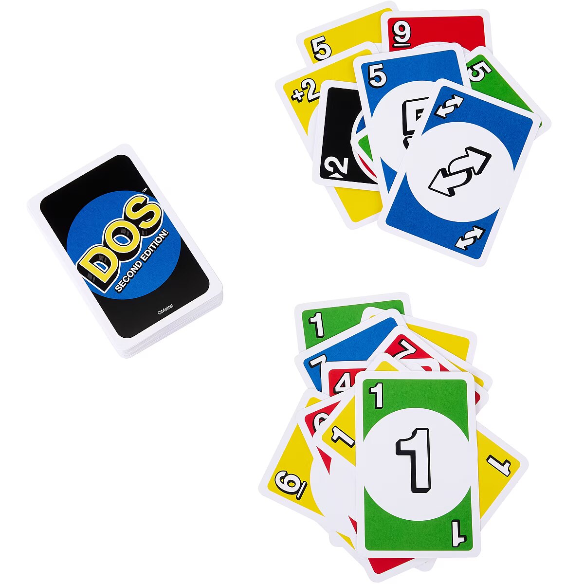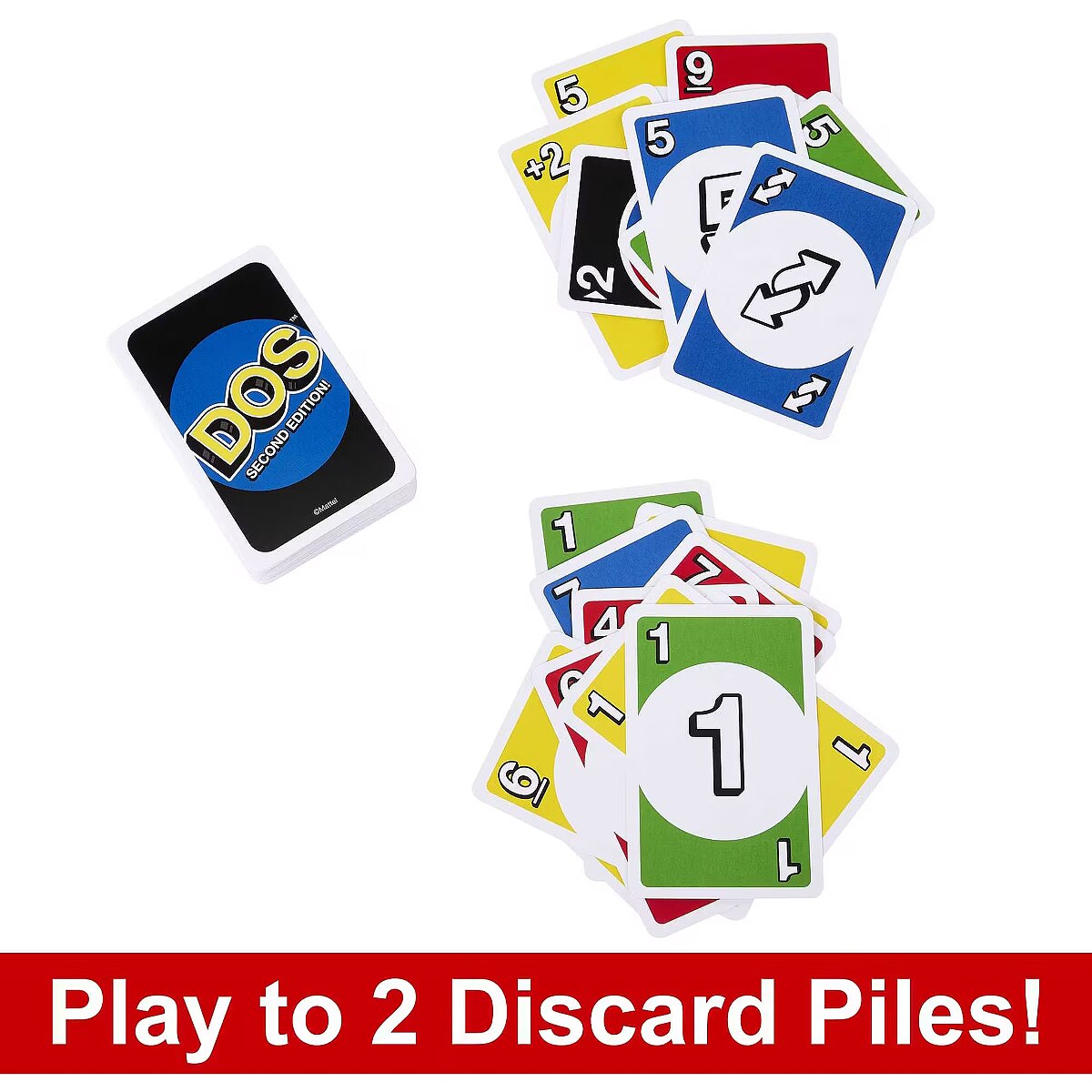 LongDesc - Double up the fun with DOS Second Edition card game! As in the UNO game, DOS players race to get rid of their cards but with twists to multiply the fun. There are TWO discard piles, and every Number 2 card in the deck is a Wild DOS Card, meaning it can be any colour 2 a player wants. Action cards include the classics, plus a Wild Play Two Card that forces the next player to play at least two cards on their turn, and if they can't, they have to draw two cards. It's twice the action and tons more fun for friends and families on game nigh! For 2 to 6 players ages 7 years old and up. Colours and decorations may vary.