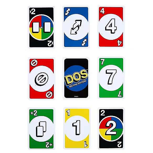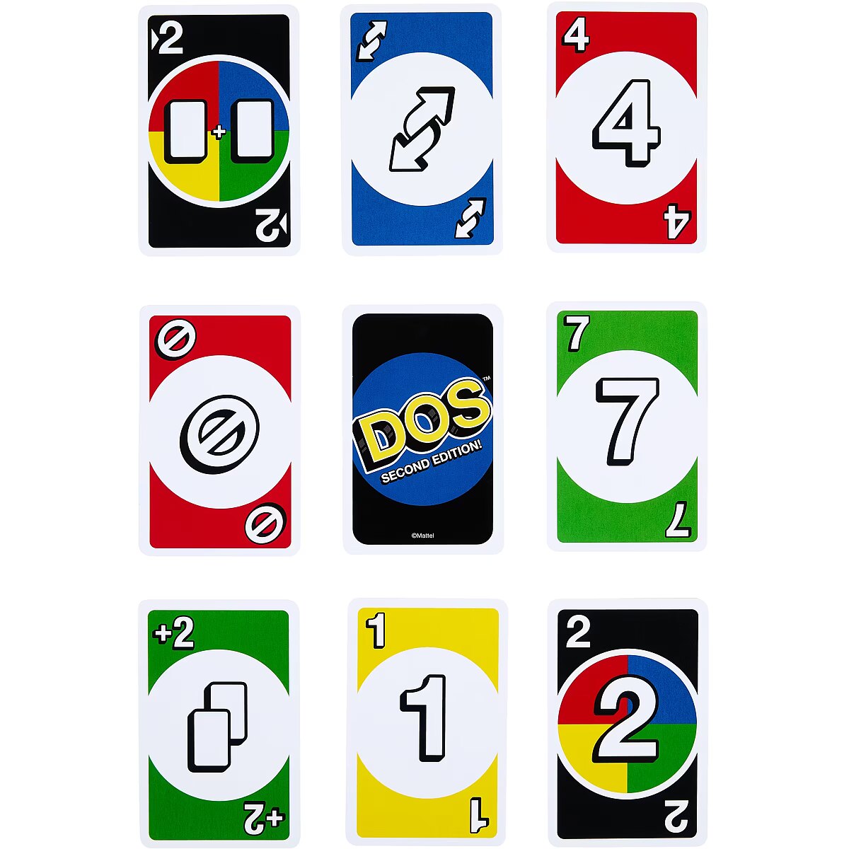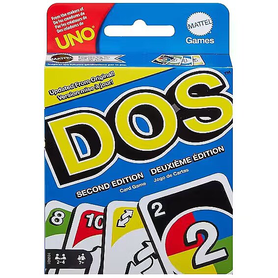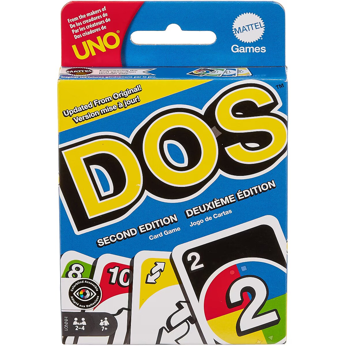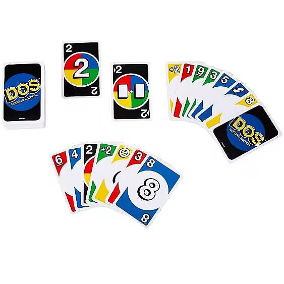 LongDesc - Double up the fun with DOS Second Edition card game! As in the UNO game, DOS players race to get rid of their cards but with twists to multiply the fun. There are TWO discard piles, and every Number 2 card in the deck is a Wild DOS Card, meaning it can be any colour 2 a player wants. Action cards include the classics, plus a Wild Play Two Card that forces the next player to play at least two cards on their turn, and if they can't, they have to draw two cards. It's twice the action and tons more fun for friends and families on game nigh! For 2 to 6 players ages 7 years old and up. Colours and decorations may vary.