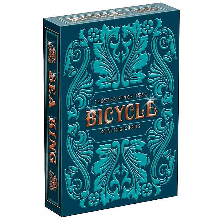 LongDesc - With Bicycle® Sea King playing cards, deal a hand with friends to experience the richly detailed blues and teals of the card back and faces! Combined with a foiled and embossed tuck, this deck is truly fit for a king!