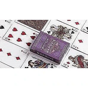 Description - Bicycle Marquis Bicycle Marquis playing cards feature a luxurious, intricate design that evokes the atmosphere of the Art Deco era of the 1920s and 1930s. The intricately designed packaging is printed on beautiful uncoated plum-coloured paper for an ultra-premium feel. The design features the Bicycle logo in stunning holographic foil, all accented with intricate filigree in stunning gold foil. The reverse design of the cards are based on Andrew Dougherty's Cruiser No. 96 deck, which was first printed in the early 20th century.