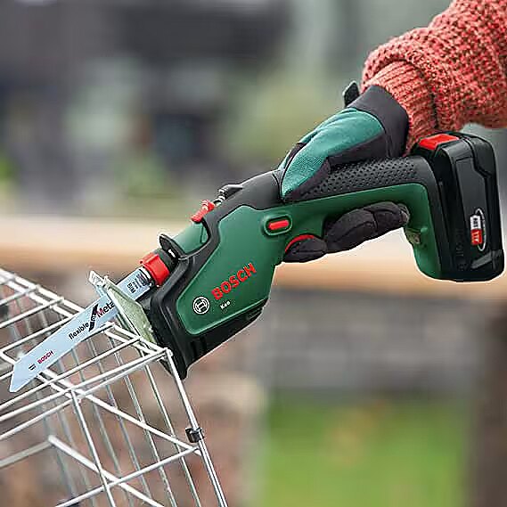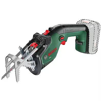 LongDesc - POWER FOR ALL cordless systems from BoschWhether drilling, cleaning or gardening. Switch quickly and easily between different devices with the 18 V POWER FOR ALL battery from Bosch. For even more flexibility the battery fits also in tools of other POWER FOR ALL battery alliance partner.Syneon Technology: Runs longerThe Syneon Technology constantly analyses the power requirement and draws just as much energy from the battery as needed, for optimum power during high-powered tasks and maximum endurance during less intense jobs.Steady and versatile – 'A-Grip' supports branchesAchieve hassle-free, single-handed trimming with the detachable 'A-Grip' that holds unsteady branches for added control, providing a safer environment and a cleaner cut.High quality cutting performanceSwiss precision blade allows sharp, high quality cuts for optimal performance and durability.One saw for a wide range of tasksFit different Swiss blades to make cutting wood, metal, and plaster possible with a single tool. The simple SDS system means no tools to change bladesClear view of battery status even during workEnsure there is enough charge left for the task at hand: the battery level indicator shows the battery´s status at a glance.A more comfortable switch-on processSoft start feature increases the tool power gradually until it reaches full speed. This enables a more comfortable and controlled working experience.