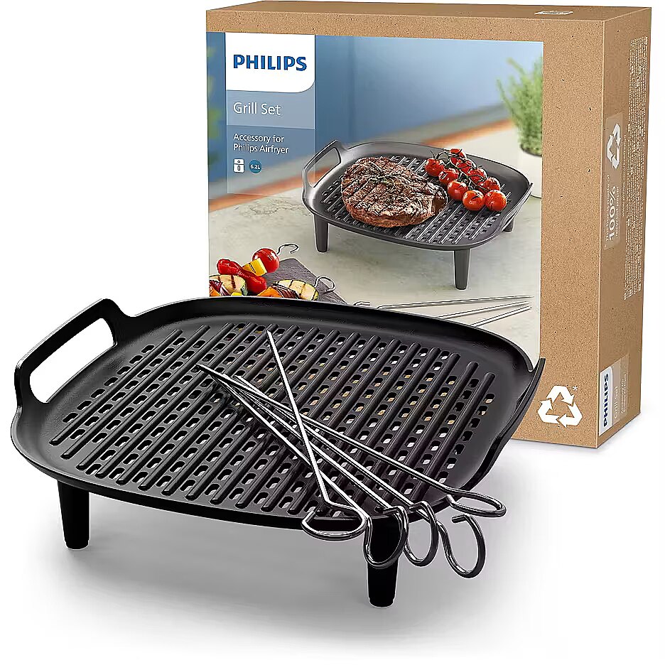 LongDesc - Philips grill set for airfryer 6.2 lPerfectly grilled meat and vegetables all in oneTake your Airfryer to the next level with our Grill Set for Airfryer 6.2 L. Master delicious grilled recipes. Prepare perfectly grilled meat and tasty vegetables in a quick and easy way.