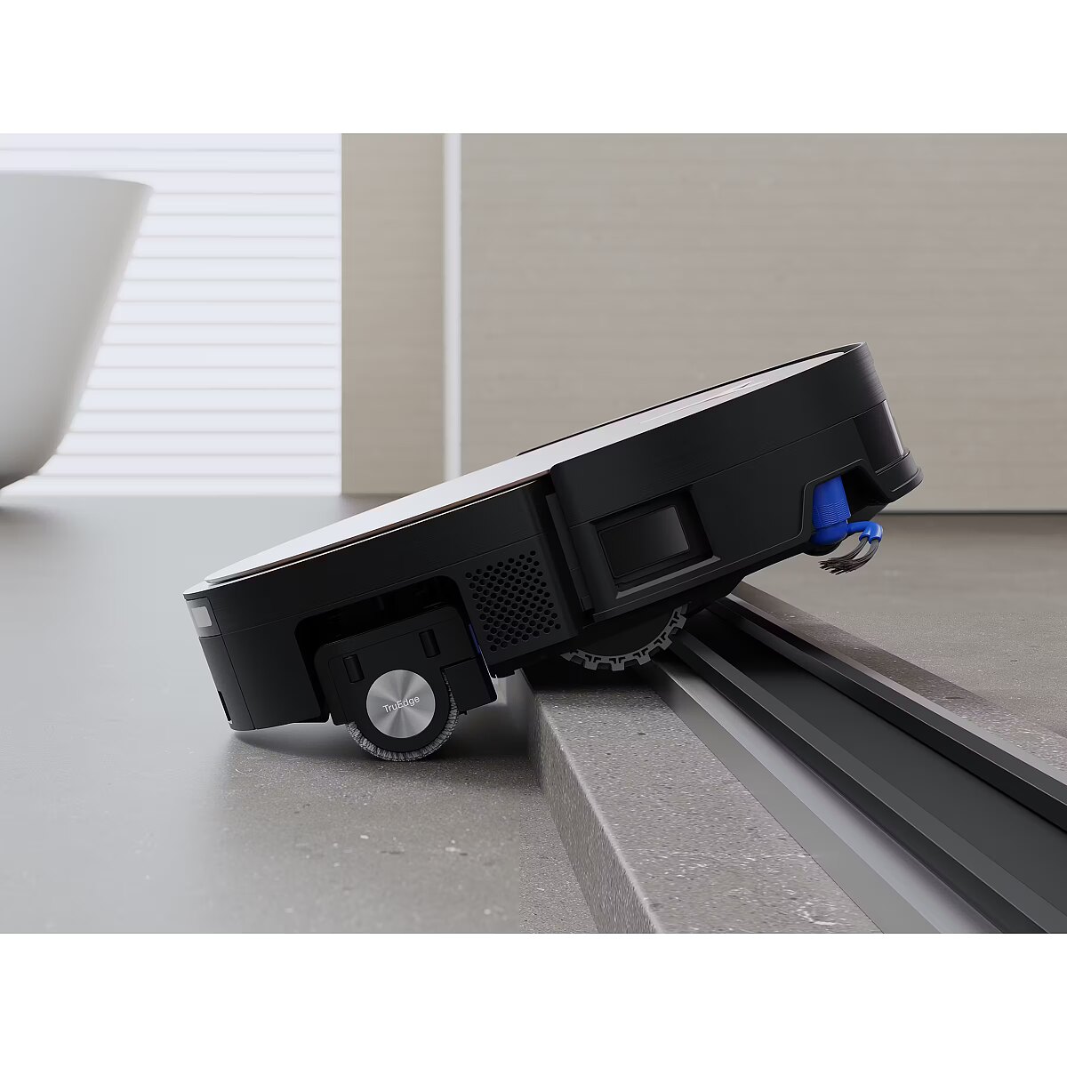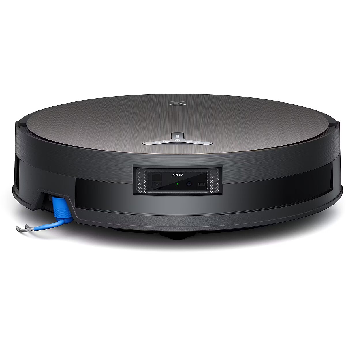 LongDesc - Vacuum & mop robot (black) with new bagless All-in-One OmniCyclone station: PowerBoost Charging, Hot Water Soak Washing, Dual Cleaning Solutions, OZMO Roller 2.0, Blast Technology, TruEdge 3.0 Extreme Edge Cleaning, Agent YIKO, TruePass Adaptive 4WD Climbing System, AIVI 3D 3.0 OMNI-Approach Technology,