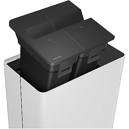 LongSummaryDescription - Samsung VR7MD96514G. Dust container type: Bagless, Product colour: Black, Grey, Shape: Round. Dust capacity (total): 0.25 L, Noise level: 74 dB, Dust capacity (base): 2.5 L. Battery technology: Lithium-Ion (Li-Ion), Runtime: 180 min, Battery voltage: 14.4 V. Height: 100 mm, Width: 359 mm, Depth: 364 mm. Package width: 518 mm, Package depth: 627 mm, Package height: 480 mm