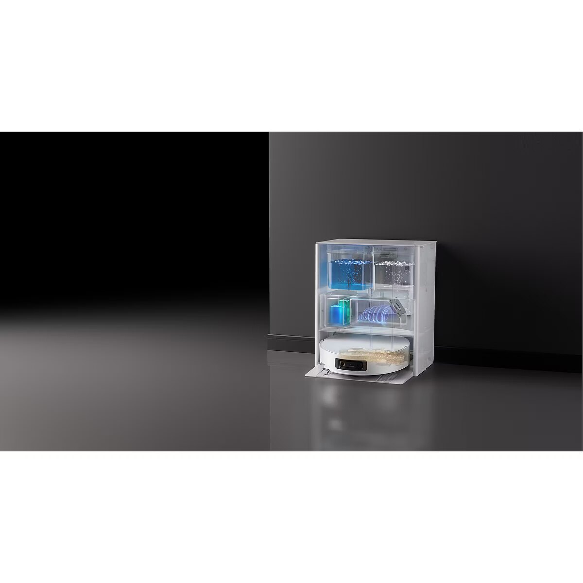 Robots putekļu sūcējs, bāzes stacija un rampas pagarinājuma plāksne, galvenā birste (jau uzstādīta), sānu birste (jau uzstādīta), birstes aizsargs (jau uzstādīts), putekļu tvertne (jau uzstādīta, 1 gab., ar filtru), mazgāšanas sistēmas filtrs (jau uzstādīts), mopa veltnis (jau uzstādīts, 1 gab.), putekļu maiss (jau uzstādīts, 1 gab.) x 2, automātiskās šķīdumu padeves modulis (ar trīskāršo tīrīšanas līdzekļu tvertni, jau uzstādīts, 1 gab.), 200 ml tīrīšanas līdzeklis x 2, 200 ml tīrīšanas līdzeklis mājdzīvnieku smaku neitralizēšanai (1 gab.), tīrīšanas rīks, ātrās uzstādīšanas ceļvedis, lietotāja rokasgrāmata. Piederumu komplekts (pilnā versija)
