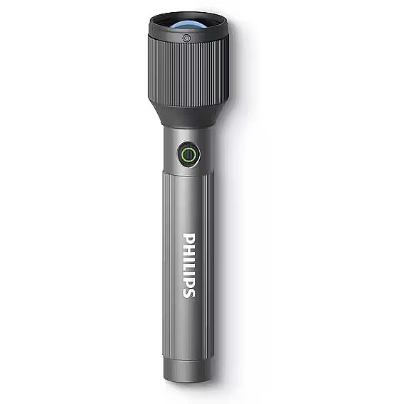 MediumDescription EN - The Philips rechargeable aluminium flashlight delivers powerful illumination of up to 770 lumens with an impressive beam distance of up to 950 metres. Designed for everyday use, it features IP44 water resistance, extended runtime of up to 30 hours and convenient USB-C charging, while the durable aluminium body ensures reliable performance in various conditions. • Brightness up to 770 lumens• Beam distance up to 950 m• IP44 water resistance• Up to 30 hours of runtime• USB-C charging• Durable aluminium body