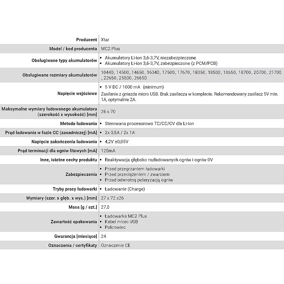 XTAR Battery charger for cylindrical Li-ion batteries 18650 Xtar MC2 PLUS