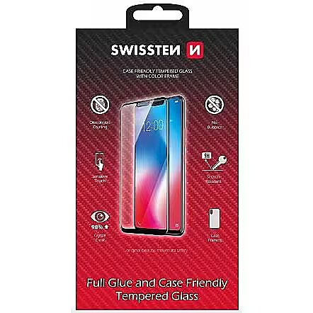 description_en - The SWISSTEN FULL GLUE, COLOR FRAME, CASE FRIENDLY protective tempered glass provides complete display protection thanks to full-surface bonding, which ensures perfect adhesion without bubbles. The colored frame perfectly copies the design of the phone, while the high hardness of 9H protects the display from scratches, cracks and impacts.