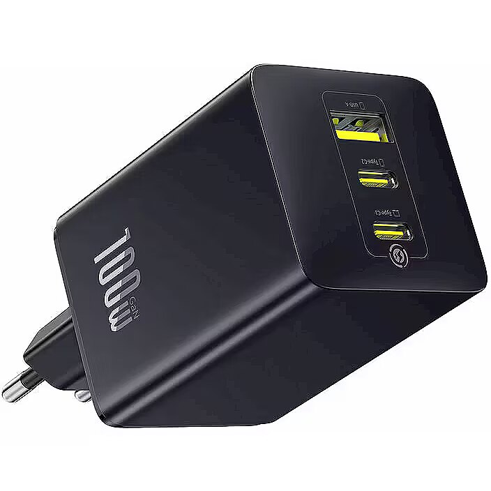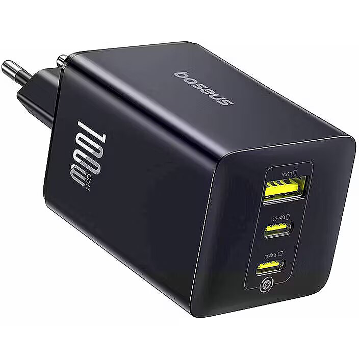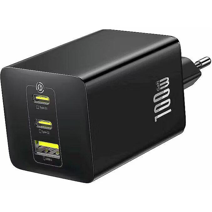 SpecificationsType: wall fast chargerModel: EnerFill FE11Brand: BaseusColor: BlackNumber of ports: 3USB‑A ports: 1USB‑C ports: 2Maximum total power: 100 WSupported protocols: Power Delivery (PD), Quick Charge (QC)Compatibility: smartphones, tablets, laptops and other USB devicesIntelligent power distribution: yesProtection: overcurrent, overvoltage, overheating, short‑circuitHousing material: plasticPower supply: 220‑240 V, 50/60 Hz