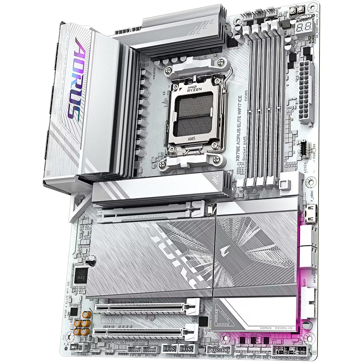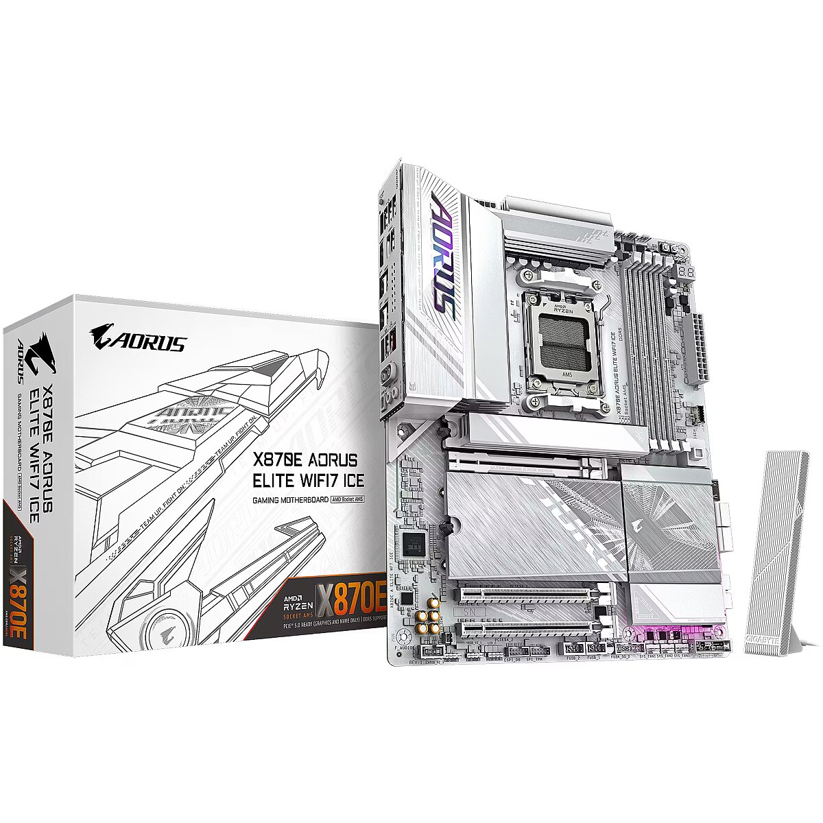 ShortSummaryDescription - GIGABYTE X870E AORUS ELITE WIFI7 ICE Motherboard - Supports AMD Ryzen 9000 CPUs, 16+2+2 Phases Digital VRM, up to 8200Hz DDR5 (OC), 3xPCIe 5.0 + 1xPCIe 4.0, Wi-Fi 7, 2.5GbE LAN, USB 4, AMD, Socket AM5, AMD Ryzen 7000 Series, AMD Ryzen 8000 Series, AMD Ryzen 9000 Series, Socket AM5, DDR5-SDRAM, 256 GB