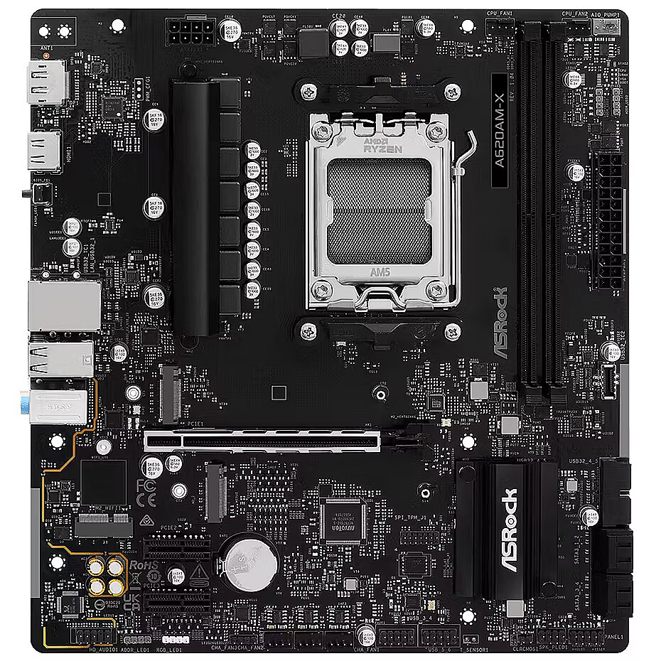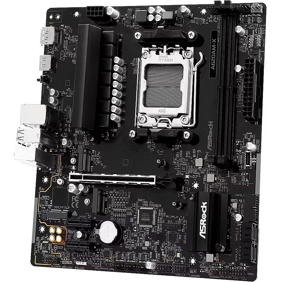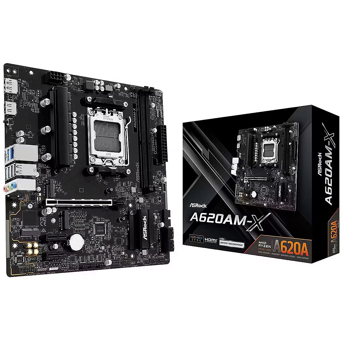 Description - A620AM-X X Series motherboard offers a compact, high-value solution, balancing performance, versatility, and reliability for both professional and daily tasks. Supports AMD Socket AM5 Ryzen™ 9000, 8000 and 7000 Series Processors 6+1+1 Power Design, Dr.MOS for VCore 2 x DDR5 DIMMs Supports Dual Channel, up to 8000+ (OC) 1 PCIe 4.0 x16, 2 PCIe 3.0 x1, 1 M.2 Key E for WiFi Graphics Output Options: 1 HDMI, 1 DisplayPort Realtek ALC897 7.1 CH HD Audio Codec 2 Hyper M.2 (PCIe Gen4x4) 4 SATA3 2 USB 3.2 Gen1 Type-C (1 Rear, 1 Front) 5 USB 3.2 Gen1 (3 Rear, 2 Front) 6 USB 2.0 (2 Rear, 4 Front) Realtek 2.5G LAN Supports BIOS Flashback