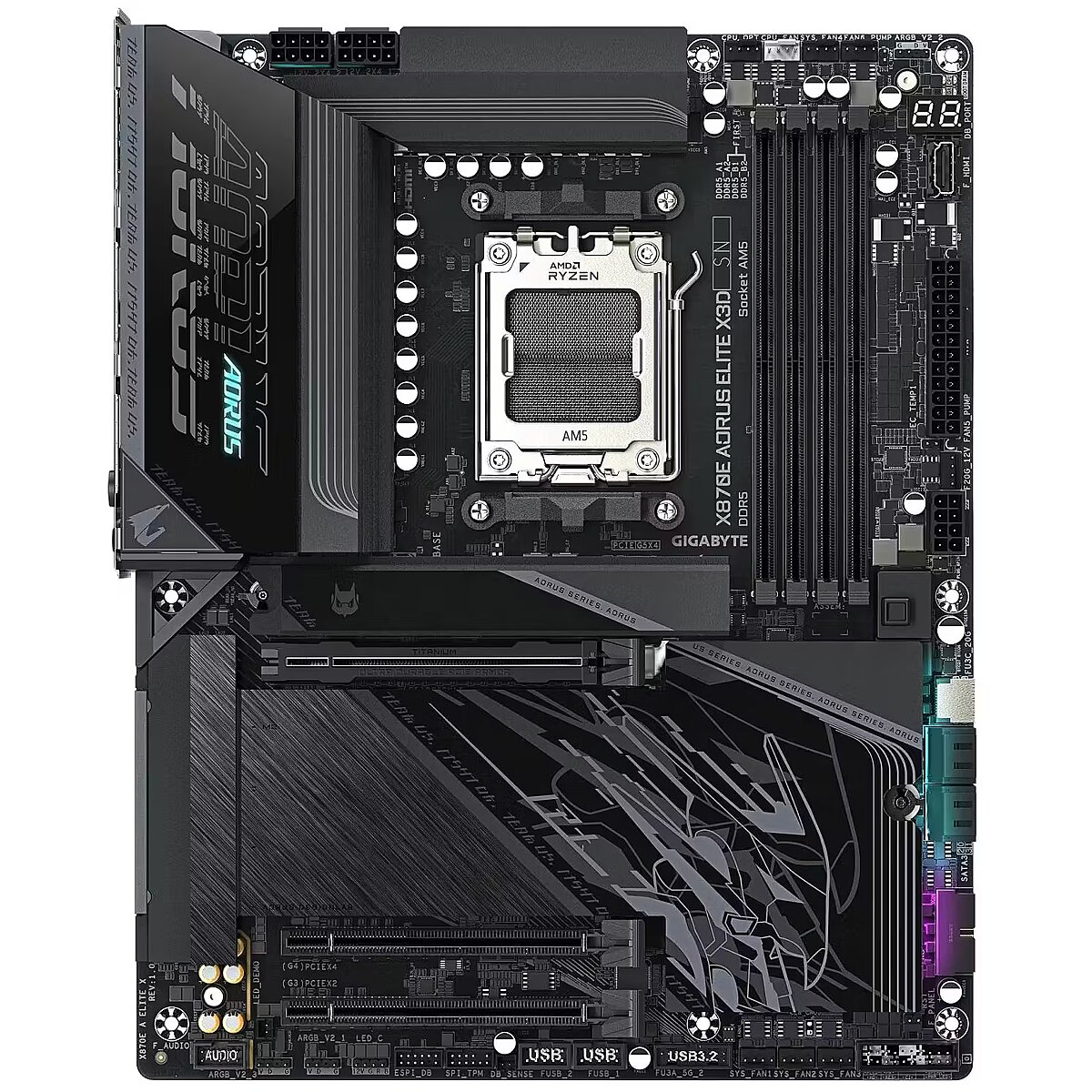 LongSummaryDescription - GIGABYTE X870E AORUS ELITE X3D Motherboard - Supports AMD Ryzen 9000 CPUs, 16+2+2 Phases Digital VRM, up to 9000Hz DDR5 (OC), 2xPCIe 5.0 + 2xPCIe 4.0, Wi-Fi 7, 5GbE LAN, USB 4. Processor manufacturer: AMD, Processor socket: Socket AM5, Compatible processor series: AMD Ryzen 7000 Series, AMD Ryzen 8000 Series, AMD Ryzen 9000 Series. Supported memory types: DDR5-SDRAM, Maximum internal memory: 256 GB, Memory slots type: DIMM. Supported storage drive interfaces: M.2, PCI Express 4.0, PCI Express 5.0, SATA III, Supported storage drive types: HDD & SSD, RAID levels: 0, 1, 5, 10. Maximum resolution: 4096 x 2304 pixels. Ethernet interface type: 2.5 Gigabit Ethernet, 5 Gigabit Ethernet, Fast Ethernet, Gigabit Ethernet, LAN controller: Realtek RTL8126, Top Wi-Fi standard: Wi-Fi 7 (802.11be)
