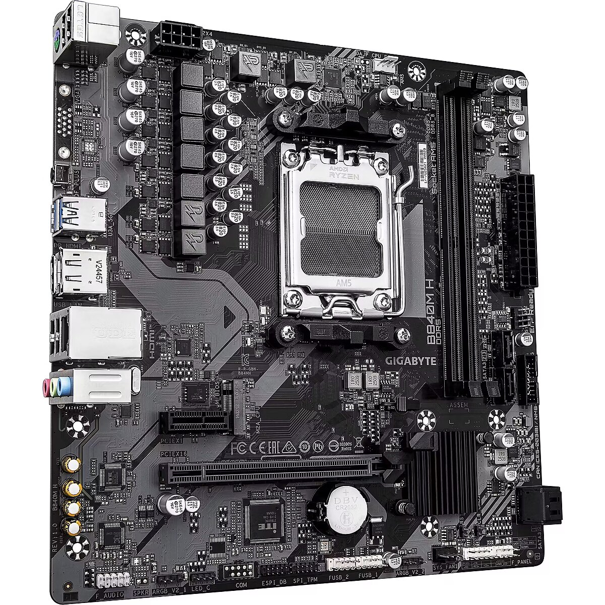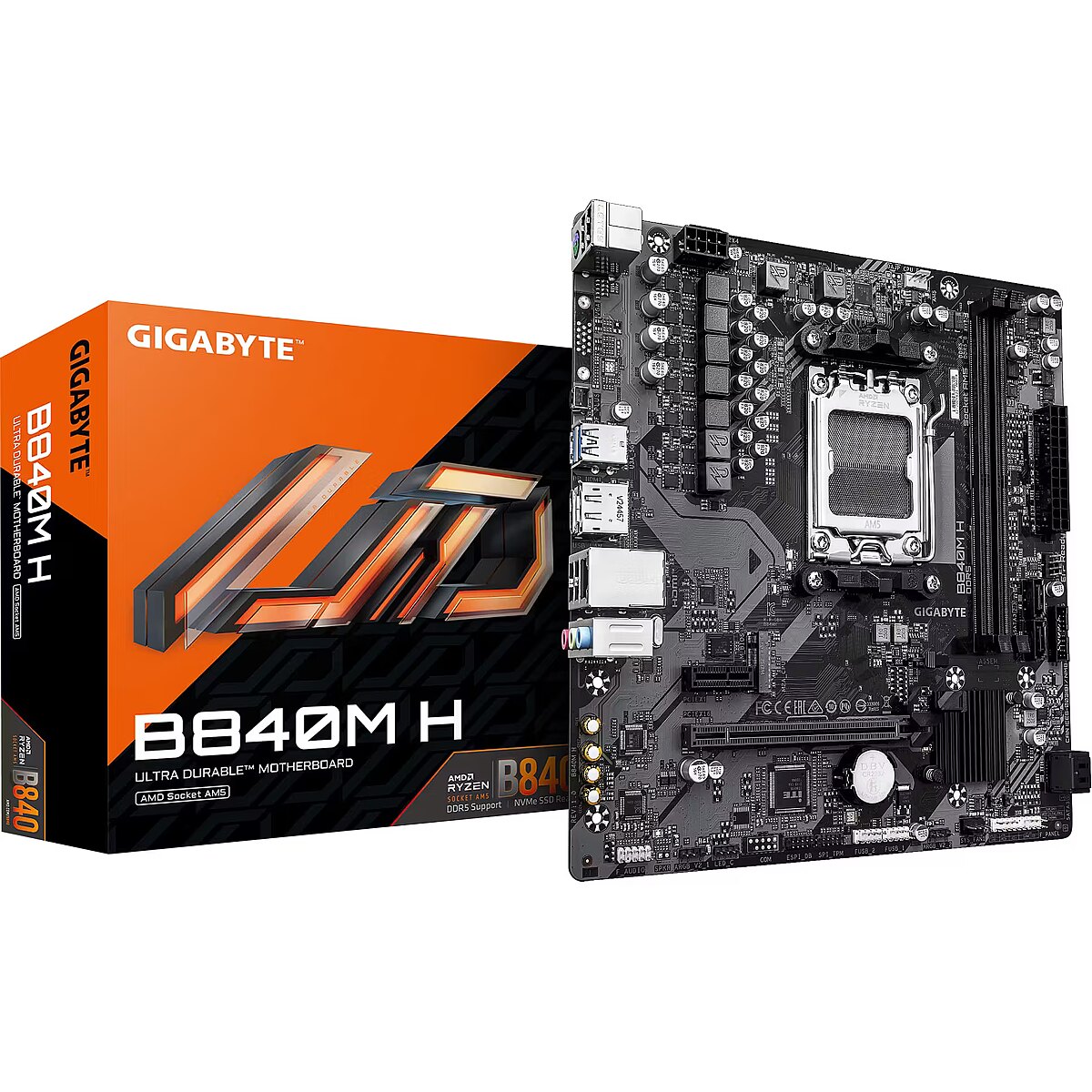 ShortSummaryDescription - GIGABYTE B840M H Motherboard - AMD Ryzen 9000 CPUs, 5+2+2 Phases VRM, up to 7200MHz DDR5 (OC), 1xPCIe 4.0 M.2, 1GbE LAN, USB 3.2 Gen 1, AMD, Socket AM5, AMD Ryzen 7000 Series, AMD Ryzen 8000 Series, AMD Ryzen 9000 Series, Socket AM5, DDR5-SDRAM, 128 GB