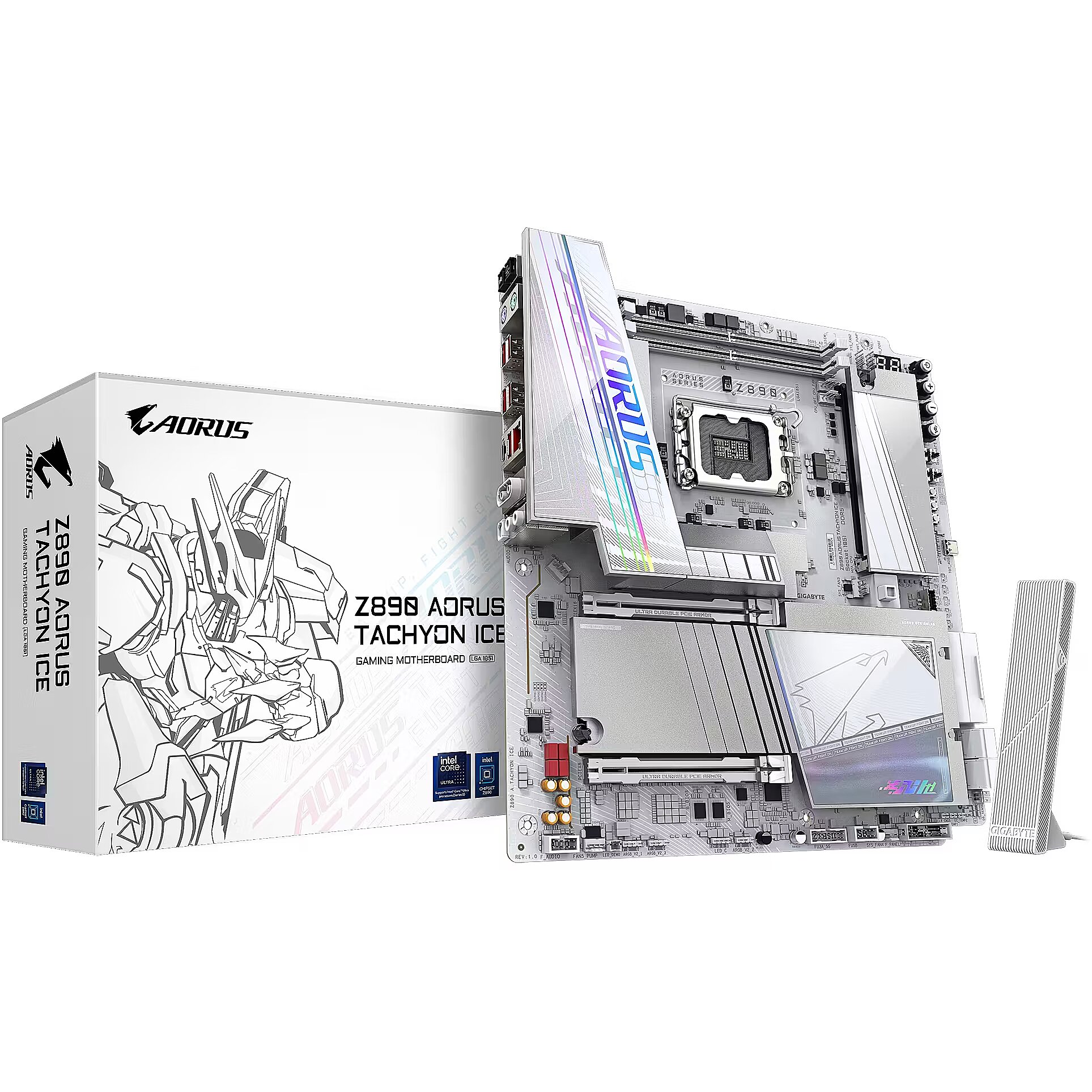 ShortSummaryDescription - GIGABYTE Z890 AORUS TACHYON ICE Motherboard - Supports Intel Core Ultra (Series 2) CPUs, 18+1+2 phases VRM, up to 9500MHz DDR5 (O.C), 1xPCIe 5.0 + 3xPCIe 4.0, Wi-Fi 7, 5GbE LAN, USB 3.2 Gen 2x2, Intel, LGA 1851 (Socket V1), Intel Core Ultra (Series 2), LGA 1851, DDR5-SDRAM, 128 GB