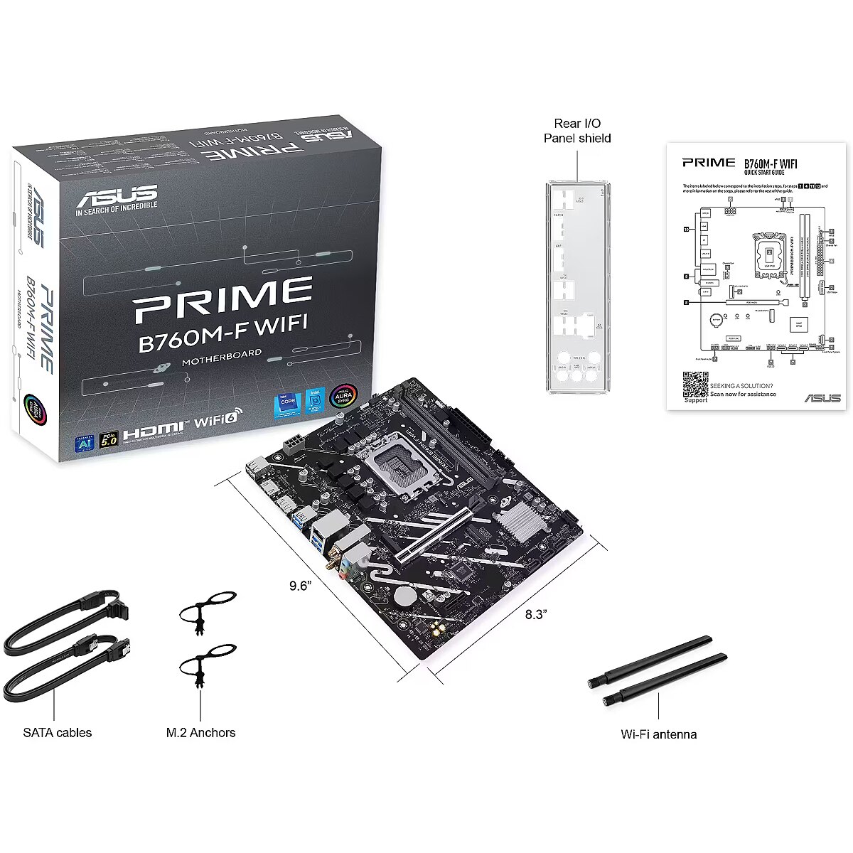 ShortSummaryDescription - ASUS PRIME B760M-F WIFI, Intel, LGA 1700, Intel® Celeron®, Intel® Pentium® Gold, Intel® Core™ i3, Intel® Core™ i5, Intel® Core™..., LGA 1700, DDR5-SDRAM, 96 GB