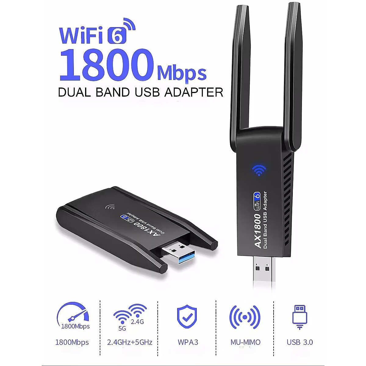 description_en - Wireless Dual Band RoGer UBAX6 Wi-Fi 6 AX1800 USB3.0 Adapter