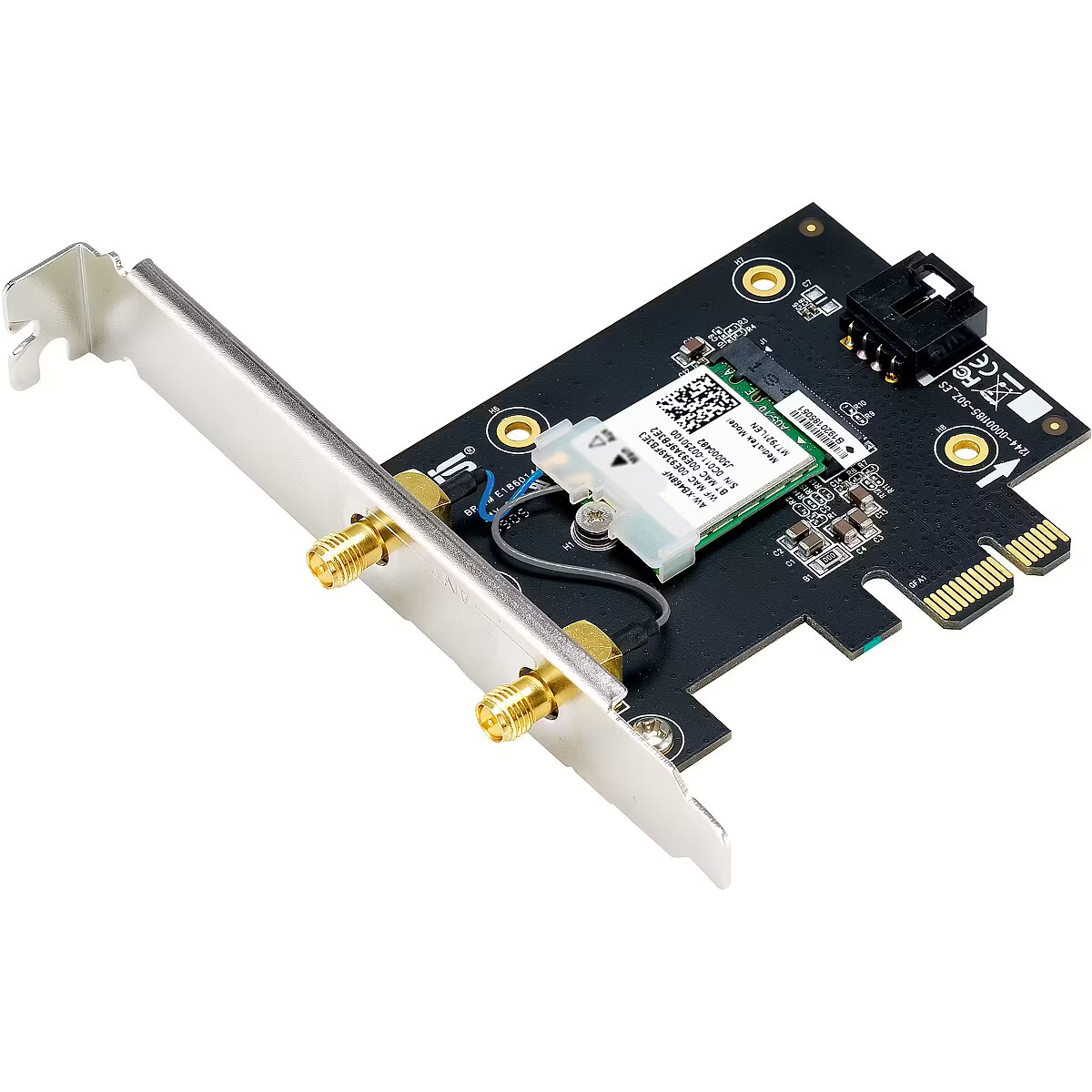 LongDesc - The WiFi 7 LeaderASUS provides a total solution for the latest WiFi 7 standard, from routers to wireless PCIe® cards. With carefully designed engineering and supporting software, ASUS WiFi 7 total solution ensures optimized capabilities and performance.* PCE-BE6500 only supports PCI-Express x1 standard, please install the adapter in PCI-e x1 slot.Least Congested WiFiASUS PCE-BE6500 is a WiFi 7 PCIe® card that allows your PC to connect to a WiFi 7 router via the dedicated 6 GHz band. This means it will not compete for bandwidth with non-WiFi 6E/7 devices. The all-new 6 GHz band, with the least congested signal interference, boosting speeds up to 2.8Gbps.Ultrafast WiFi 7Desktop UpgradeWith WiFi 7’s 6 GHz technology, PCE-BE6500 delivers wireless speeds that are up to 1.2X faster* than WiFi 6 / 6E devices, making it perfect for even the most bandwidth-demanding tasks.*Comparison based on a 2x2 160 MHz WiFi 7 PCIe card versus a 2x2 160 MHz WiFi 6 / 6E PCIe cardInstant Bluetooth® UpgradeSlot PCE-BE6500 into your PC for an instant upgrade to the latest Bluetooth® 5.4 technology, improves power consumption, supporting large networks and optimizing energy consumption. It allows for flexible network configurations and various applications, prioritizing energy efficiency.Enhanced Network Security with WPA3PCE-BE6500 uses the WPA3 WiFi security protocol, providing your PC with an extra layer of protection against external attacks to give you added peace of mind.