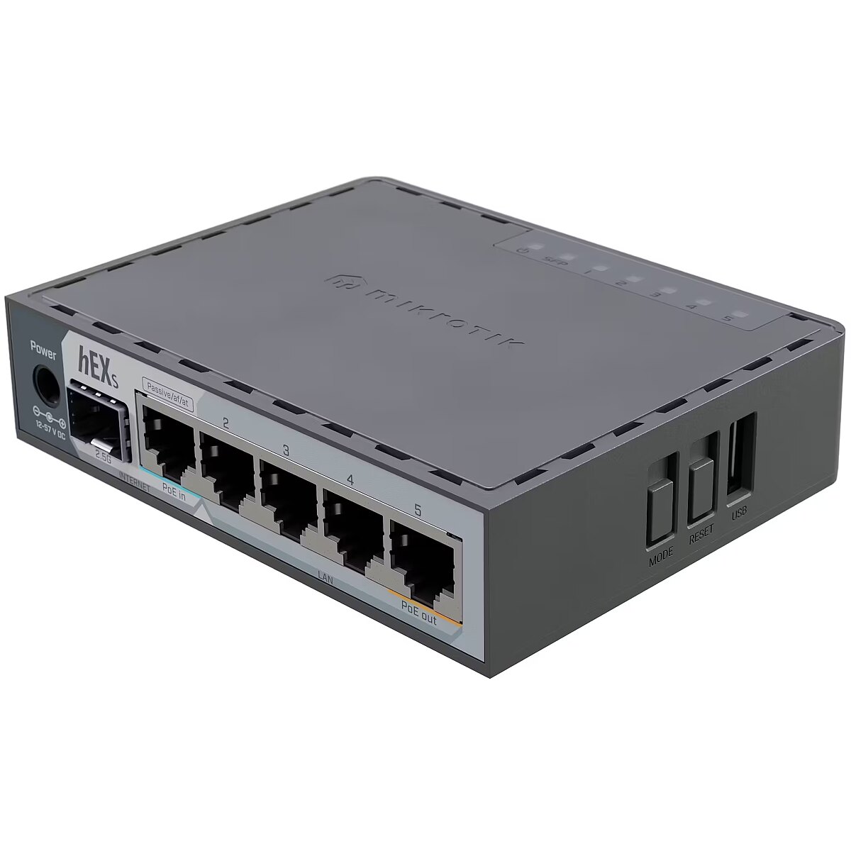 Description - MIKROTIK hEX S (2025) A compact, affordable wired router featuring a 2.5G SFP port, 5x Gigabit Ethernet, PoE out, USB, and a fast dual-core CPU — ideal for homes, offices, or underfunded labs that need reliable performance. With 5× Gigabit Ethernet ports (including PoE-in on port #1 and PoE-out on port #5), plus a 2.5 Gigabit SFP cage, this compact router can adapt to many roles. And unlike most ISP boxes, you can assign any port as WAN, LAN, or bridge — full flexibility right out of the box. That’s just the beginning. RouterOS v7 gives you advanced routing, VLANs, bonding, traffic shaping, and more — so you can build the wired network you’ve always wanted.