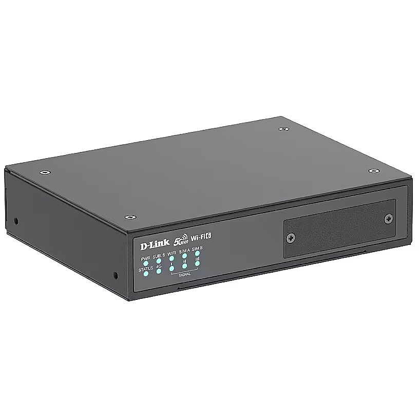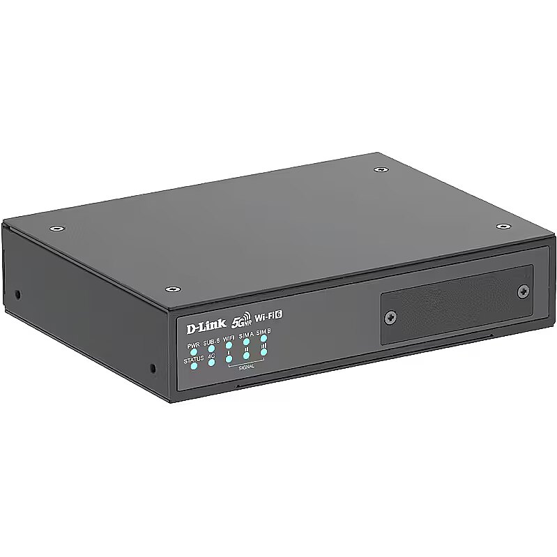 LongSummaryDescription - D-Link 5G M2M VPN Wi-Fi 6 Router. Device type: Cellular network router, Product colour: Black. Ethernet LAN interface type: Gigabit Ethernet, Ethernet LAN data rates: 10,100,1000 Mbit/s, Networking standards: IEEE 802.11a, IEEE 802.11ax, IEEE 802.11b, IEEE 802.11g, IEEE 802.11n. Wi-Fi standards: 802.11a, 802.11b, 802.11g, Wi-Fi 4 (802.11n), Wi-Fi 5 (802.11ac), Wi-Fi 6 (802.11ax), WLAN data transfer rates supported: 574 Mbit/s. Data network: 4G, 5G, LTE, 4G standard: LTE, 5G standard: Sub6 NSA, Sub6 SA. Security algorithms: SNMP, SNMPv2, SNMPv3