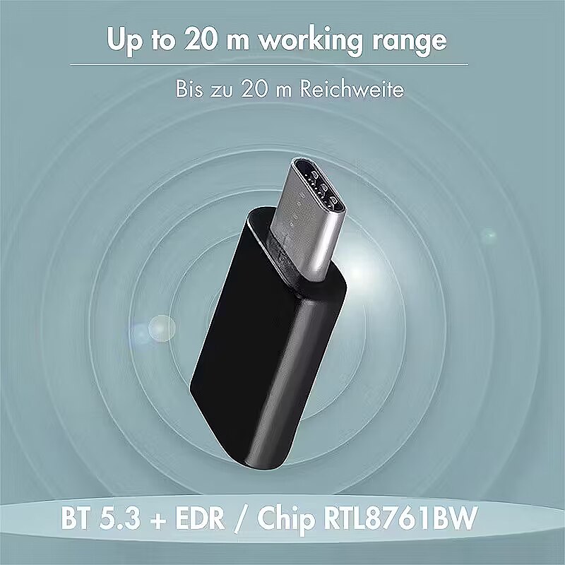 Description - With BT 5.3, you benefit from a stable connection, higher transmission speed and lower energy consumption compared to older versions. Thanks to the modern USB-C connection, which is increasingly being used on new devices, it is versatile and compatible with a wide range of devices. It is small and lightweight, so it can be easily transported and used on different devices.