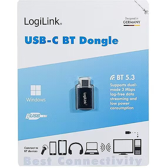 Other features - Versatile connectivity and a stable connection thanks to USB-C and BT 5.3 Lightweight, small and fits into almost any USB-C port. Connection 1: USB-C plug Comply with USB 3.2 (USB 3.0) SuperSpeed Chipset: RTL8761BW Frequency range: 2.4022.48 GHz ISM band Operating range: 20 m Supports Windows 7, 8, 10 and 11