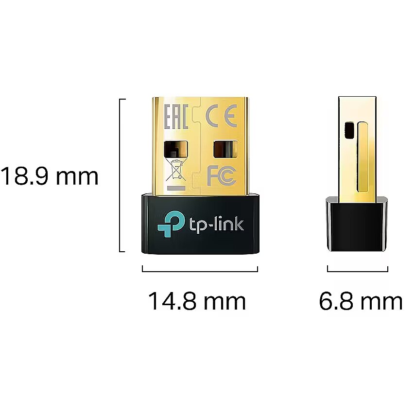 Technical_details - UB5A equips the PC with more advanced Bluetooth 5.0 technology, which is consistently updated compared to older versions. It offers faster connection speeds and a longer range than Bluetooth 4.0 technology, ensuring a strong and stable wireless connection between your PC and Bluetooth devices. Users also benefit from energy savings and greater transmission capacity. Item number: 100004392 Type Bluetooth adapter Color: Black EAN 4897098687802 Manufacturer no. UB5A USB design Connections Other 1x USB-A 2.0 Bluetooth version 5.0 Drivers Windows 11/10/8.1/7 Feature Adopts the latest Bluetooth 5.0 technology, backwards compatible with Bluetooth V4.0/3.0/2.1/2.0/1.1 | Nano size Dimensions Width: 14.8mm x Height: 6.8mm x Depth/Length: 18.9mm