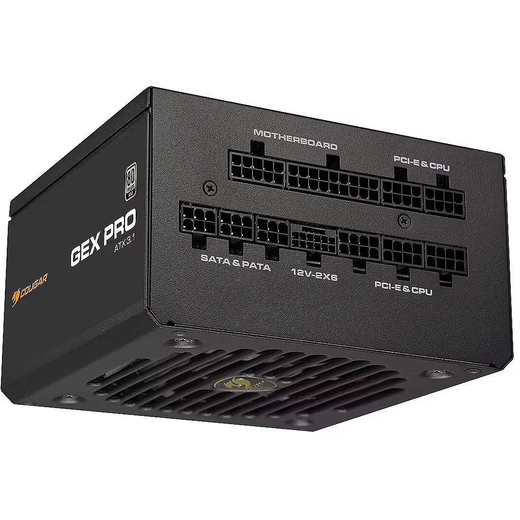 LongDesc - GEX PRO 650/750/850WOutstanding performance and exceptional valueThe COUGAR GEX PRO series boasts high-quality 80 PLUS Gold certification, achieving up to 91% conversion efficiency. Utilizing a native PCIe 12V-2X6 connector design, this power supply delivers power to next-gen graphics cards through a single 12+4-pin cable, bringing them into compliance with Intel’s ATX 3.1 standard. With flawless power delivery in 40°C environments, it is designed for users who are price-conscious but unwilling to compromise on reliability and silence.ATX 3.1 CertifiedDesigned to support next-generation systems, the COUGAR GEX PRO series conforms to the ATX 3.1 standard. Featuring a native 12V-2X6 design, it provides power to the next-generation graphics cards through a single 12+4-pin cable. With both 80 PLUS Gold efficiency rating and Cybenetics certifications (750W/850W), it offers high-quality stability, durability, and reliability.The COUGAR GEX PRO series passes the four strict power excursion tests from PSU ATX 3.1 Guide, in which the spike power consumption must bear up to 200% of the rated power for 100μs.Designed for the New Era of PCIe Gen 5.1!The COUGAR GEX PRO series supports the latest PCIe 5.1 specification: its powerful and stable performance meets the needs of next-generation GPUs, delivering perfect power for next-gen graphics cards. Equipped with a modular native PCIe 12V-2X6 connector, the 650mm length provides sufficient slack to reduce the risk of faulty connection during PC installation, without the need for a 6+2 pin adaptor.Notice: Before using the PCIe 12+4pin cable, please go to the graphics card official website to check the recommended wattage requirements.High PerformanceEfficiencyThe GEX PRO series features a highly efficient design that surpasses the 80 PLUS Gold standard, to help you save money on your electricity bill.Perfect Fan Speed to Noise RatioUsing COUGAR’s exclusive 120mm HDB fan, the advanced fan blade design enhances airflow smoothness and optimizes silent performance.HDB FanCompared to other fan bearing types, the HDB fan is considered the best in its class for operating noise and expected lifespan. Fluid dynamics and fluid-based characteristics greatly reduce friction and vibration, resulting in better reliability and quieter operation.More Stability. Less Noise.Crafted for quiet operation, COUGAR’s exclusive 120mm HDB fan achieves an ideal equilibrium between efficient cooling and minimal noise. Optimized, grooved fan blades are molded with an integrated stabilizing ring, minimizing flex during rotation and reducing turbulence for an optimal and silent cooling experience.Refined Regulation. Stable OperationIt includes 105°C Japanese capacitors standby power to ensure keep providing computer with stable electrical supply. - Tight 2% voltage regulation for ultra-stable operation.- Optimally perform in 40ºC working temperature environments.Easy PC BuildsOne Size Fits AllAt 140mm in length, the GEX PRO is one of the most compact, fully modular PSUs. it fits in a wide range of cases, giving you additional flexibility for building your PC.Stylish DesignFeaturing a sleek embossed black design with ample cable length for easy and aesthetically pleasing PC installation.Fully Modular Cables / Embossed black cablesConnect only the cables you need, reducing cable clutter and friction and improving the airflow and the ease of installation of DIY solutions.Support PCI Express 5.1 Graphics Cards 12+4 Pin ConnectorConnect the 12V-2X6 with true 200% power excursion dynamic outputs.80 PLUS Gold CertifiedUp to 91% efficiency power conversion to cut down your electricity bill.Durable HDB FanCOUGAR’s 120mm HDB fan: efficient cooling, minimal noise.Compact PSU Size for All PC CasesIts 140mm length suits most cases and allows for easy installation.Fully Modular Power Supply UnitConnect only the cables you need for less clutter and better airflow.Silent SpinGroundbreaking grooved fan blade design lets you experience noiseless gaming.Compatible with The Lastest PC TechnologyCreated for user with current and next-generation multi-core CPU platforms.Flawless Operation at 40°CPowerful performance at 40°C ambient temperature.