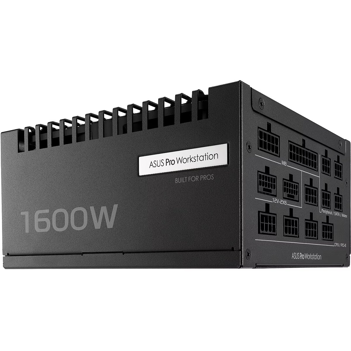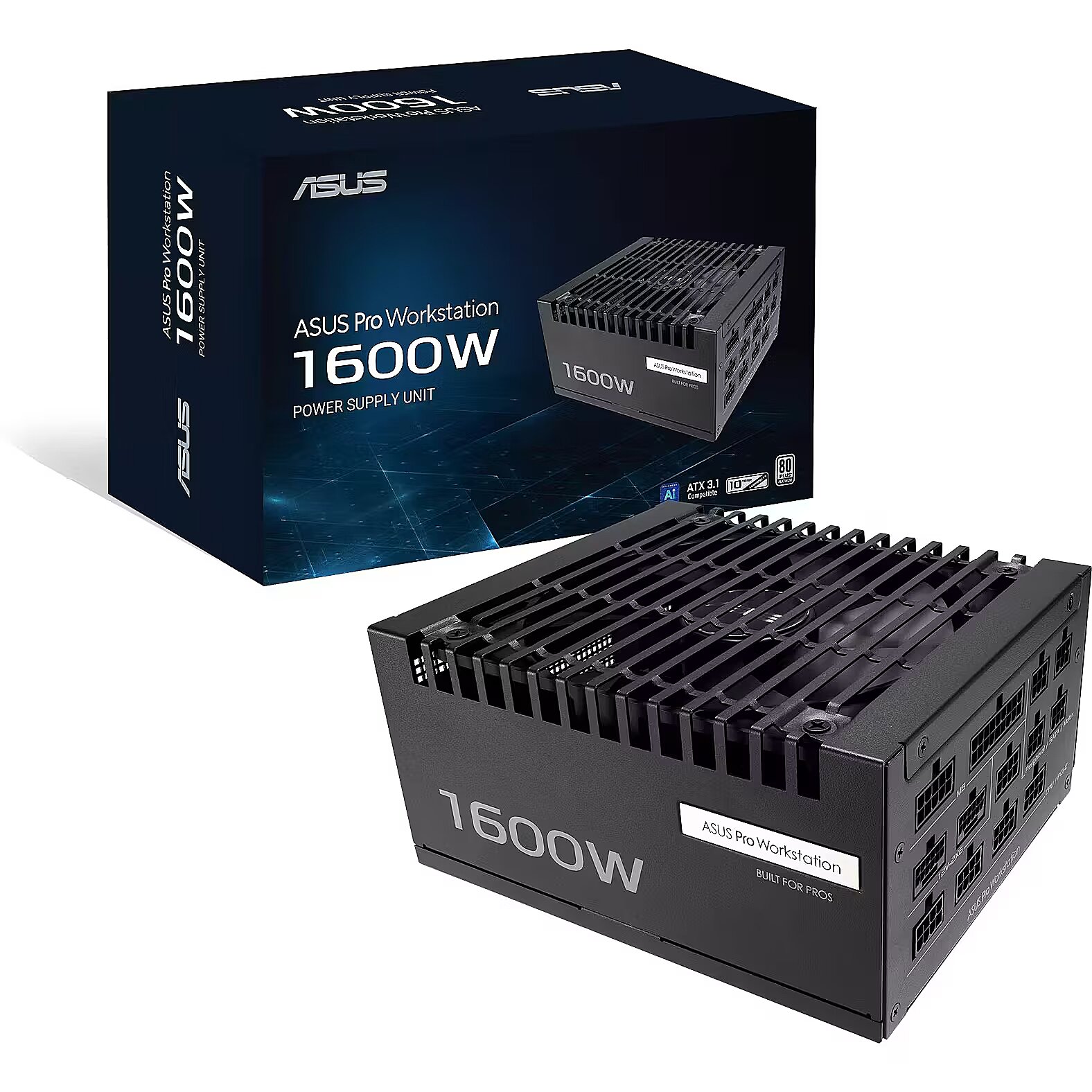 LongDesc - ASUS Pro WS 1600W Platinum PSU delivers exceptional voltage stability and advanced power delivery for professionals, supporting up to two graphics cards to meet the demanding AI workloads.The ASUS Pro WS 1600W Platinum PSU is engineered to support up to two GeForce RTX™ 5090 graphics cards. It also features 80 PLUS Platinum certification, high-performance copper pins, dual-ball fan bearings, etched cables, rock-solid voltage stability and advanced power delivery, making it an ideal choice for AI solutions, deep learning and IT management.ENGINEERINGHeavy-Duty PowerDesigned to reliably deliver the thousands of watts necessary to power up to two NVIDIA® GeForce RTX™ 5090 graphics cards, the ASUS Pro WS 1600W Platinum enables breakthrough performance that meets the needs of demanding AI workloads.Gold-Plated High-Performance Copper PinsThe copper pins of the PCIe® connectors in this PSU have been upgraded with gold plating to help ensure cooler operation and improved power delivery efficiency. This plating translates to a significant reduction in normal 12V-2x6 connector temperatures (up to 10°C), promoting optimal performance and stability for even the most demanding graphics cards. Furthermore, the improved contact between socket pins and connectors reduces resistance and improves durability for connector insertion and removal, ensuring reliable cooling performance.Protective PCB CoatingAll wrapped upA protective conformal coating envelops the circuit board to help protect against short-circuits caused by moisture, dust or debris. This added layer of protection enhances durability and stability, ensuring reliable performance throughout the PSU’s lifespan.ATX 3.1 CompatibleATX 3.1 ushers in tighter voltage and current regulation for next-gen hardware ― and the ASUS Pro WS series is ahead of the curve with full compliance. The 16-pin PCIe cables bundled with the PSU deliver up to 600 watts to PCIe 5.1 graphics cards, readying your build for the graphics cards of tomorrow.80 Plus Platinum The ASUS Pro WS Platinum uses low-ESR Japanese server-grade capacitors to ensure efficient operation. This upgrade enables an 80 PLUS Platinum certification, which guarantees 89% efficiency at 100% load and 92% efficiency at 50% load. This increased efficiency results in less heat, reduced fan noise and increased reliability.COOLINGExtruded Aluminum Heatsinks The integrated heatsinks have up to twice the volume of standard designs, to dissipate heat more effectively and help extend component lifespan. Dual-Ball Fan BearingsUp to twice the lifespanDual-ball bearings boast a remarkable lifespan of up to 80,000 hours, lasting up to twice as long as sleeve bearings and exceeding even fluid dynamic bearings. This helps ensure long-lasting, reliable cooling with minimal noise.EXPERIENCEEtched CablesMade using pliable premium materials, these etched cables are easily flexible during installation, and they operate at temperatures 50°C lower than the safety limit when routed for cable management. The cables also meet the rigorous standards of the UL1581 flame test and UL758 certification, helping to ensure a smooth PC DIY experience and exceptional safety.DIY-Friendly CPU/PCIe Power ConnectorEngineered for a streamlined build experience, the power cable features a distinct clip between the 4+4 pin connectors and a unique color scheme for easy identification during installation. The integrated clip helps ensure a secure and effortless connection to the motherboard's CPU power connector, while the dual-color PCIe 16-pin connector enhances visibility and simplifies GPU power connections.Compact SizeThe compact 175mm length allows flexible installation in a wide range of PC cases, making it easier to maintain clean cable management and optimized airflow.10-year WarrantyEnjoy the peace of mind that the reliability of the ASUS Pro WS Platinum offers, backed by a 10-year warranty.