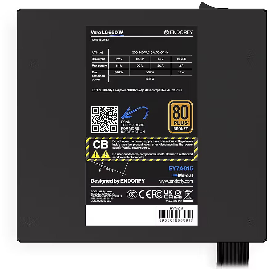 Ostettavissa on Endorfy-valmistajan virtalähde, jonka 650W teho. Tuotteelle on myönnetty 80 PLUS Bronze -energiatehokkuussertifikaatti.